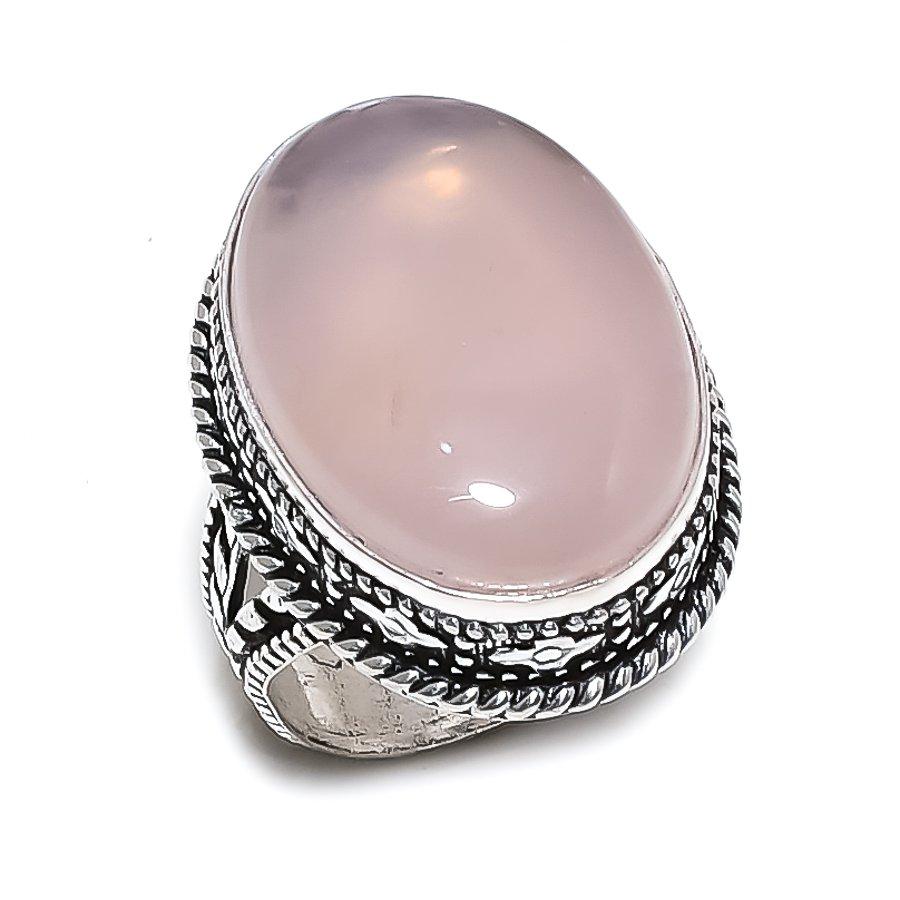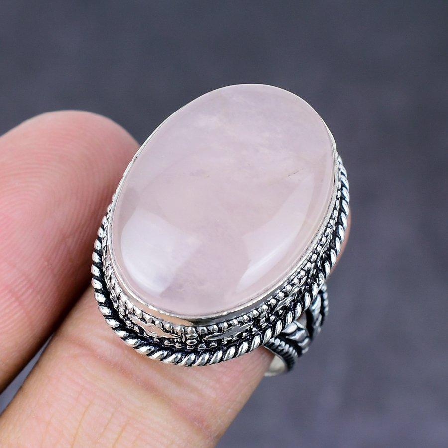 Кольцо ручной работы из стерлингового серебра 925 пробы с натуральным розовым кварцем, размер 9 E4H99