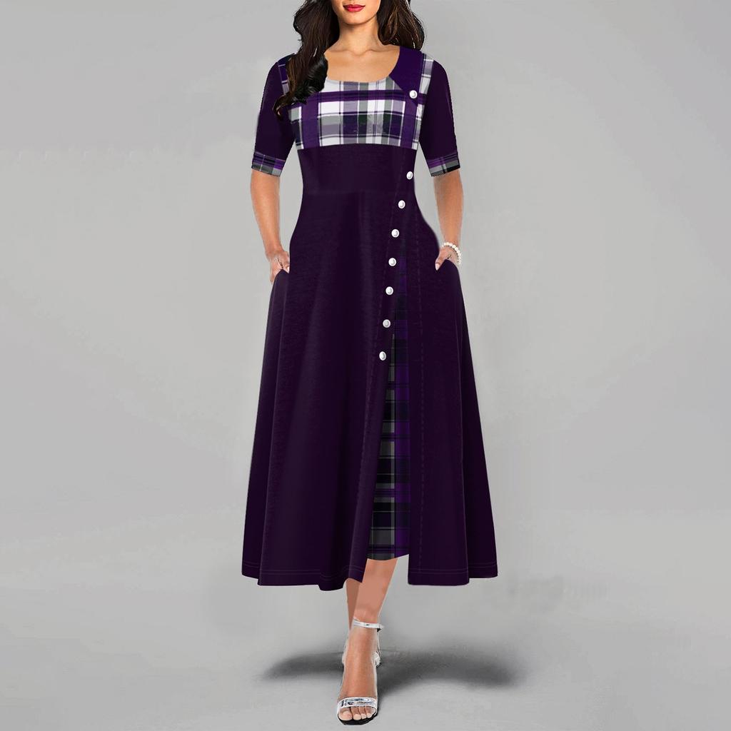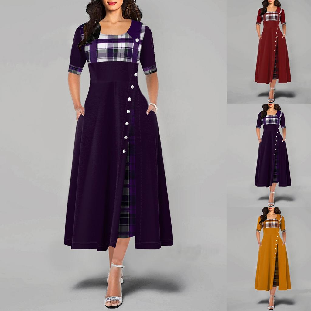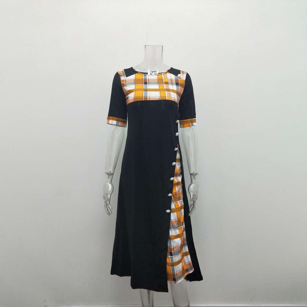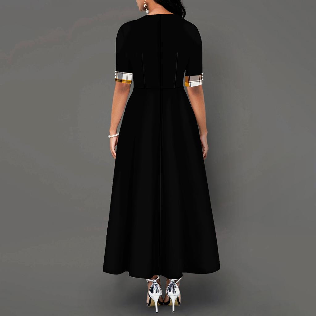 Летнее модное длинное платье с круглым вырезом и воротником средней длины, нерегулярное длинное платье