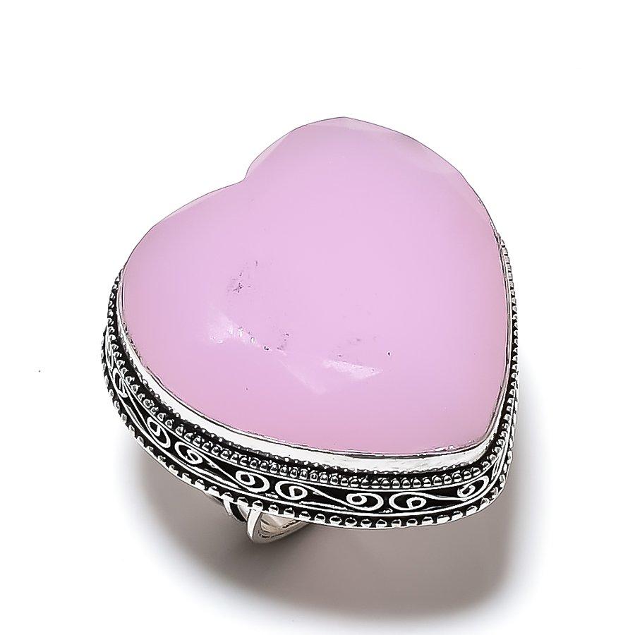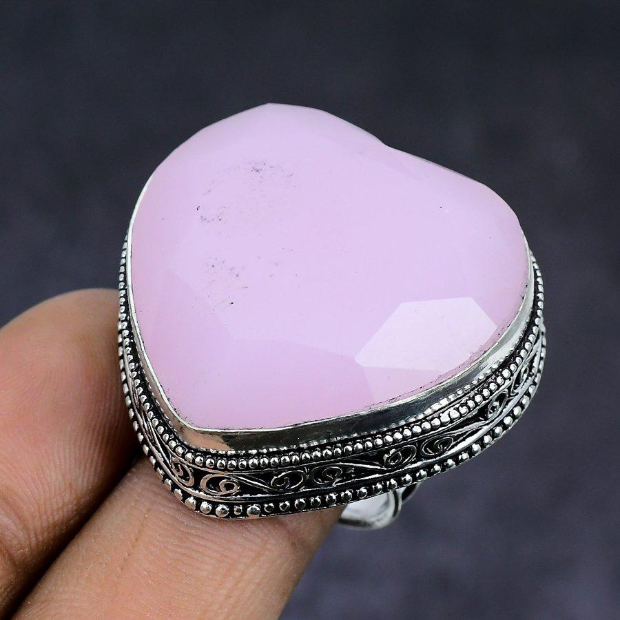 Ювелирное кольцо из стерлингового серебра 925 пробы с натуральным розовым халцедоном, размер 8,5 i5t03