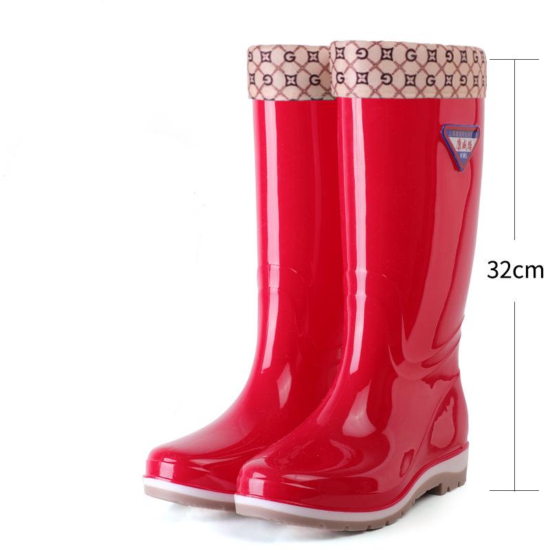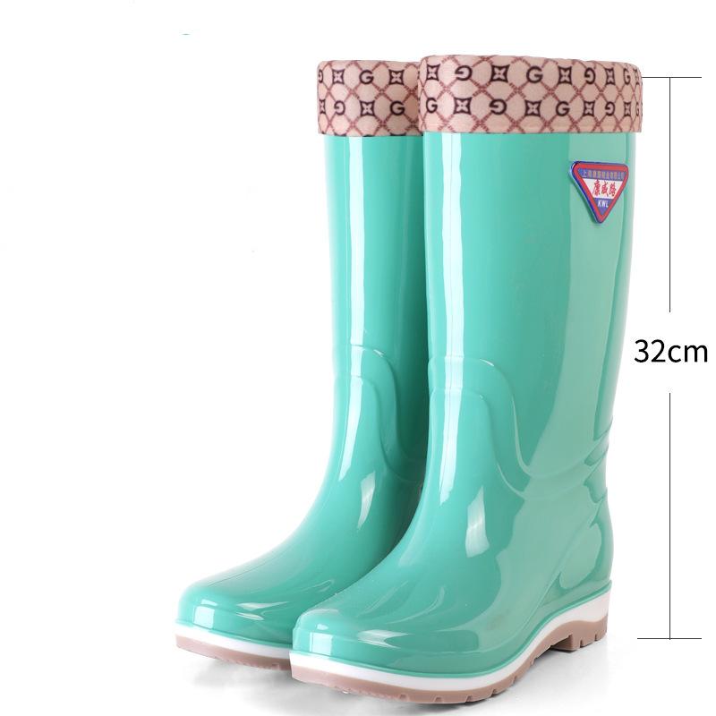 Женские бархатные теплые дождевые сапоги с высокой трубкой, износостойкие резиновые сапоги средней длины, кухонная нескользящая резиновая обувь, водонепроницаемая рабочая обувь