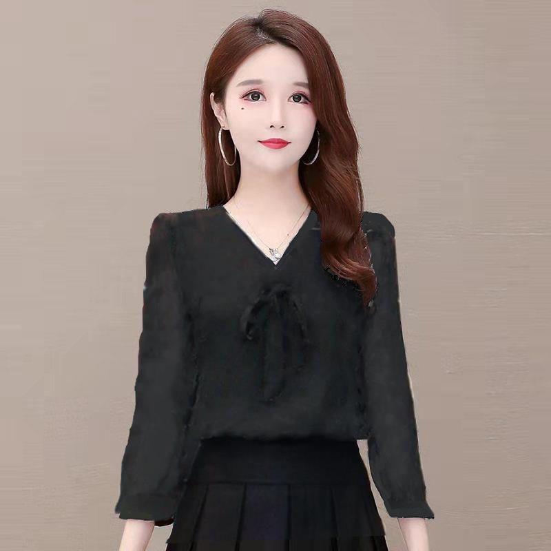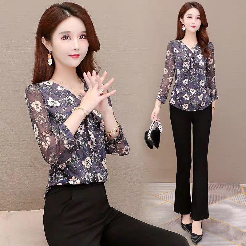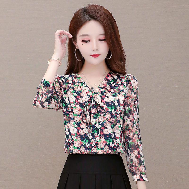 Шифоновая рубашка больших размеров, женская фрагментированная блузка с v-образным вырезом, облегающая повседневная рубашка, темпераментный весенний топ