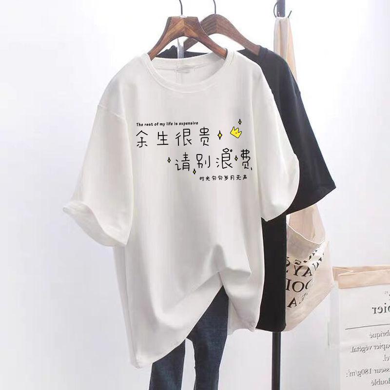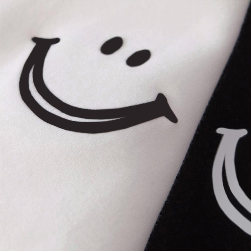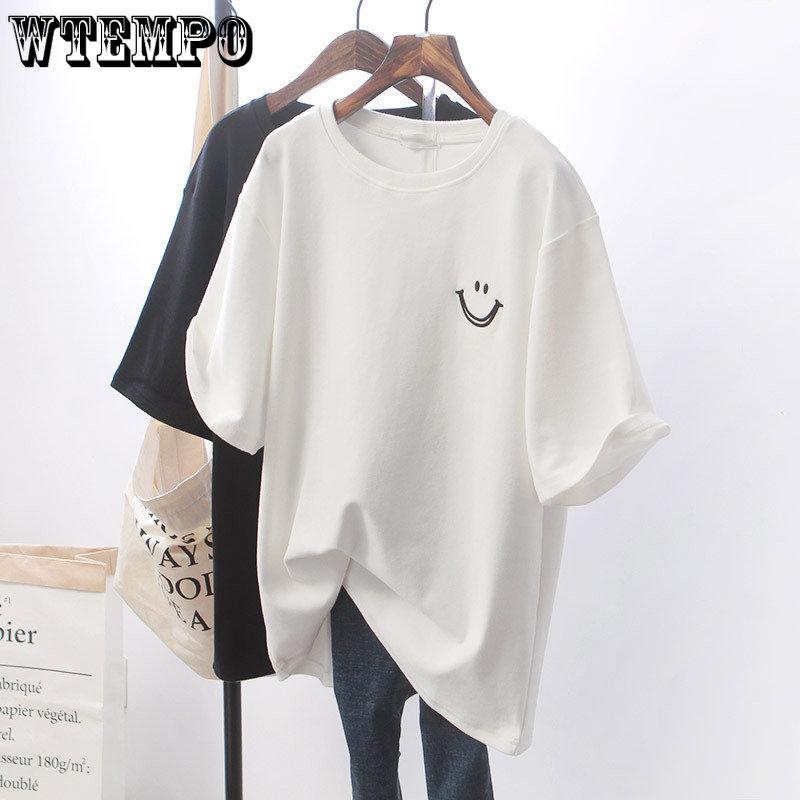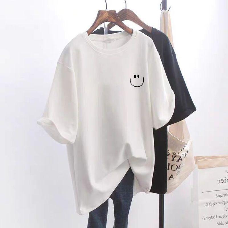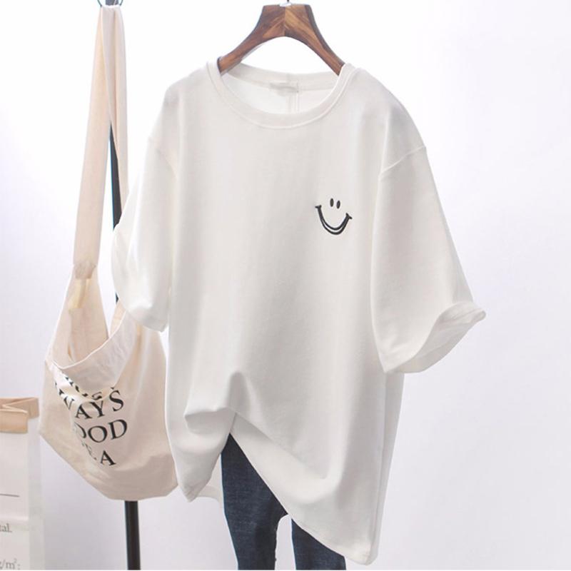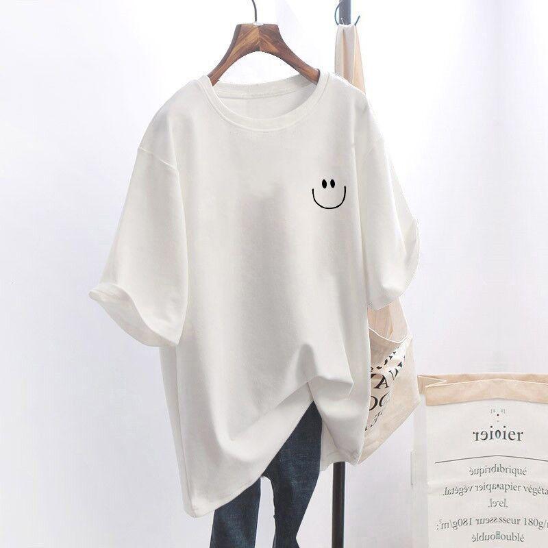 Свободная версия футболки с принтом «улыбка» Нижняя рубашка Белая футболка Студенческий топ Футболка средней длины с короткими рукавами