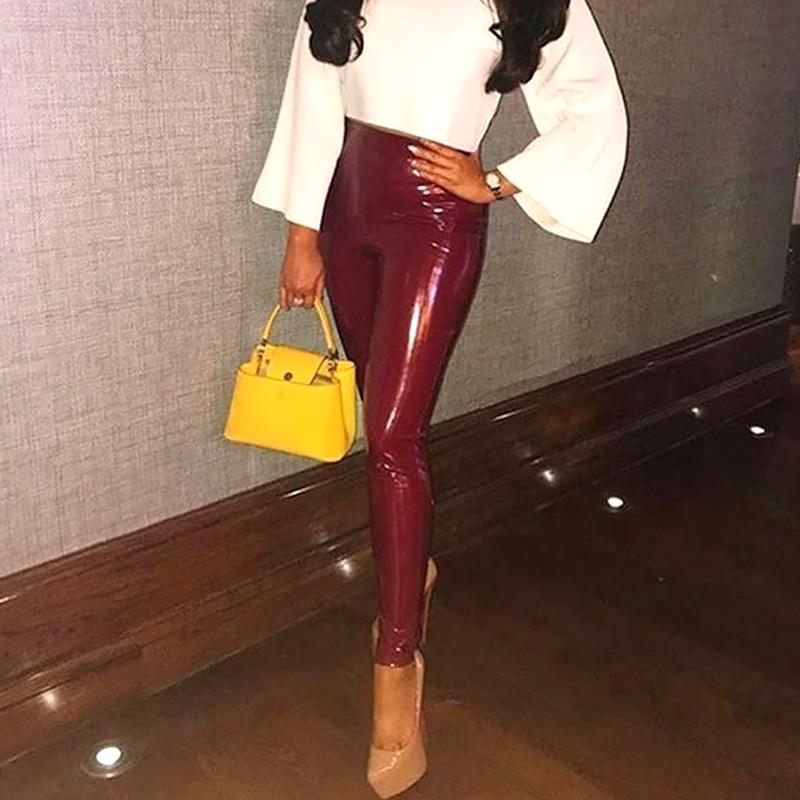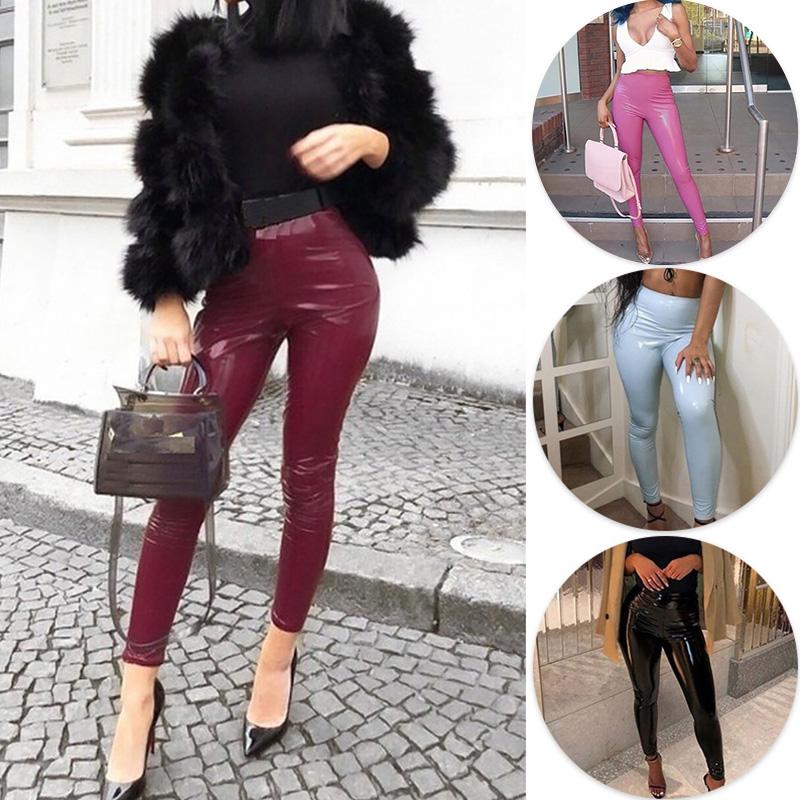 Женские тонкие брюки с высокой талией, леггинсы, повседневные эластичные брюки-карандаш из искусственной кожи, осень и зима