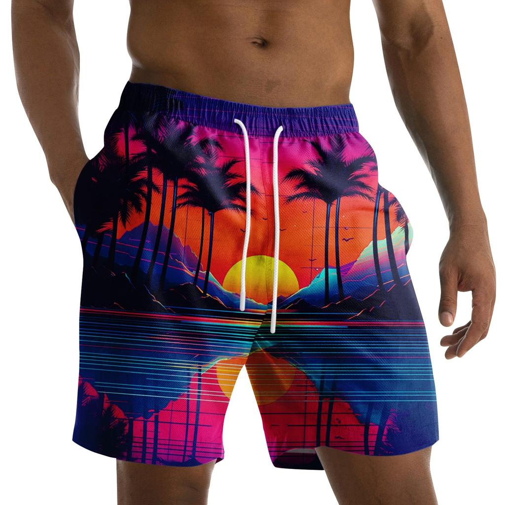Мужские модные гавайские пляжные спортивные повседневные шорты с принтом и ремешками, брюки
