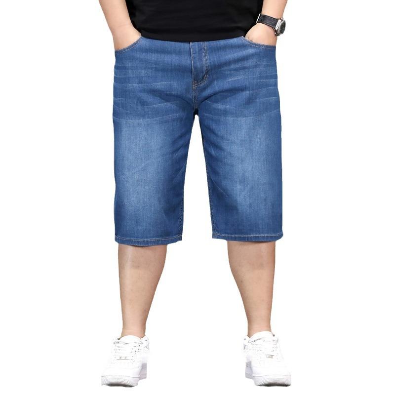 Весенне-летние новые модные синие мужские джинсовые шорты из стираного денима, тонкие повседневные универсальные свободные прямые шорты большого размера для мужчин