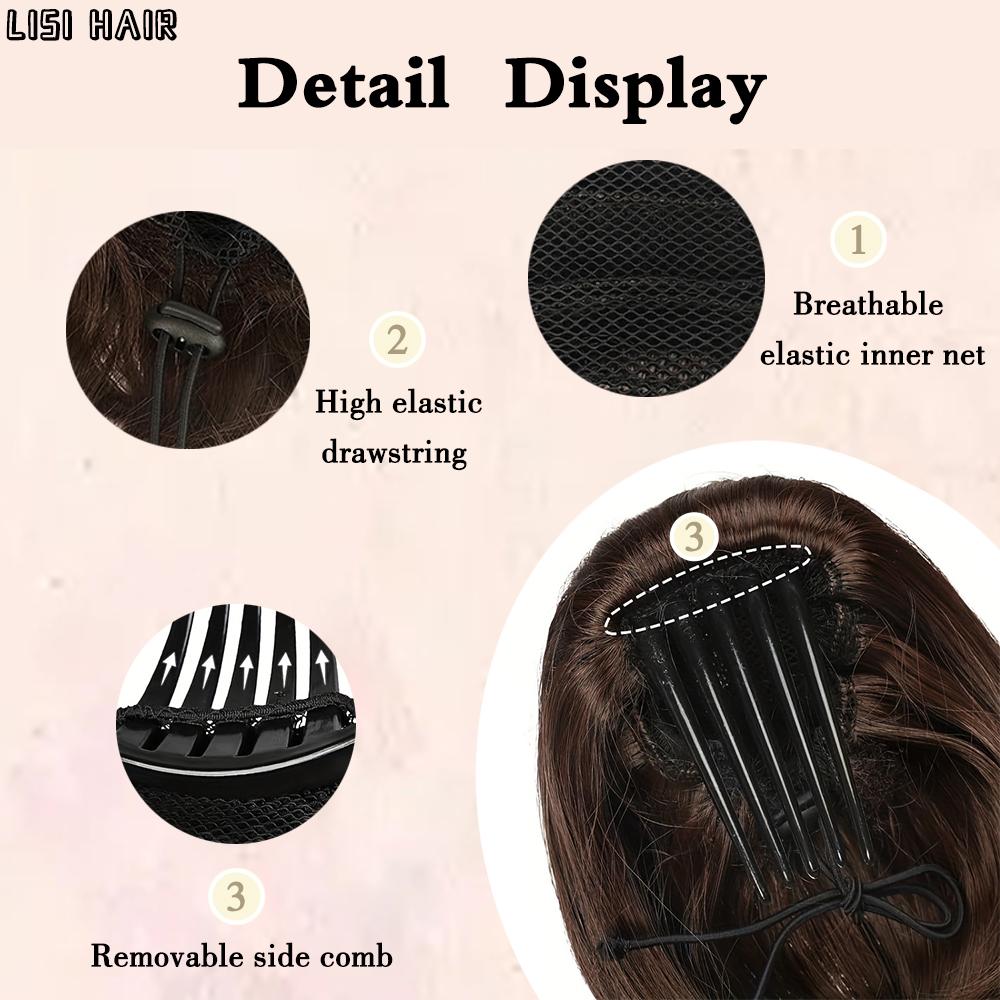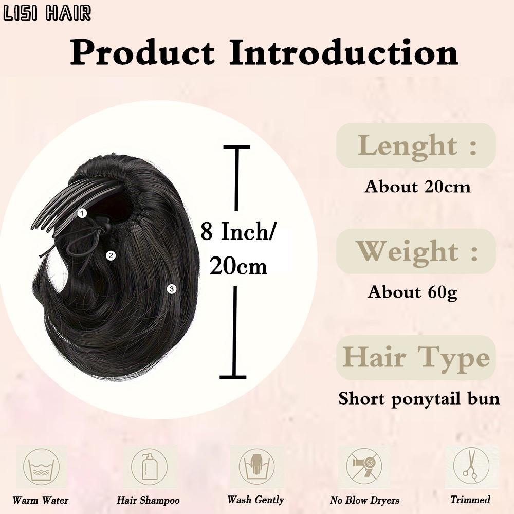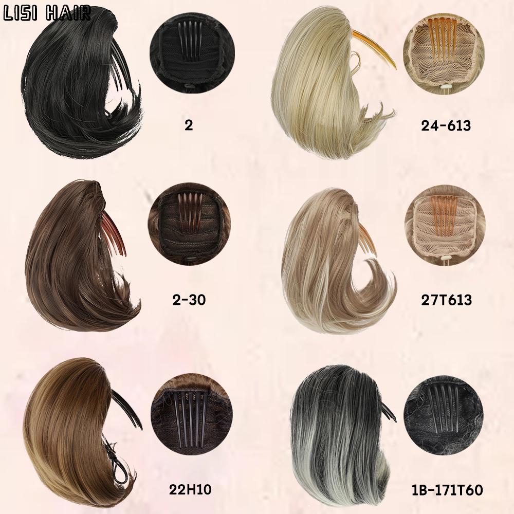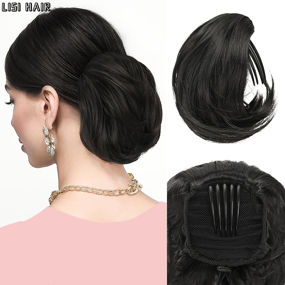 LISI HAIR Синтетический короткий парик-булочка с хвостиком и зажимом-гребнем, прическа-булочка на шнурке, парик-булочка для женщин, повседневная одежда