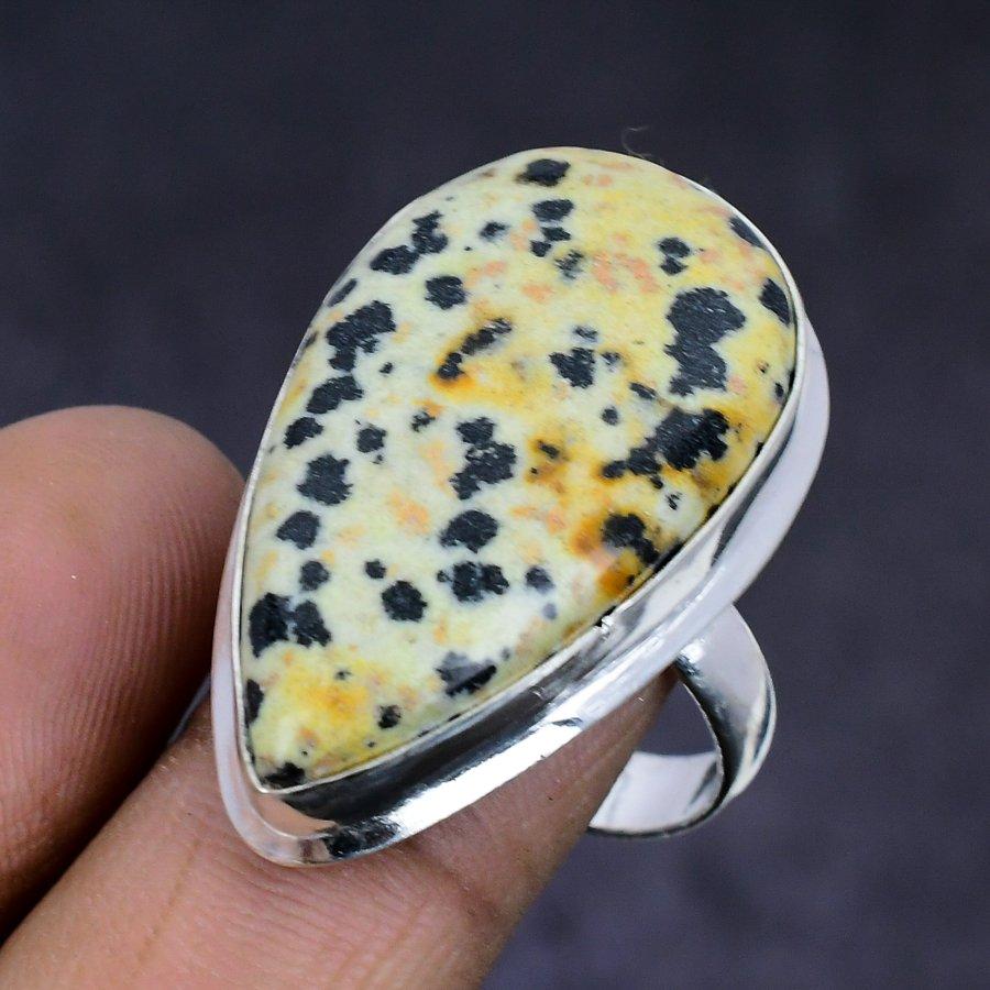 Натуральный драгоценный камень далматинская яшма, ювелирное кольцо из стерлингового серебра 925 пробы, размер 9 U3B92