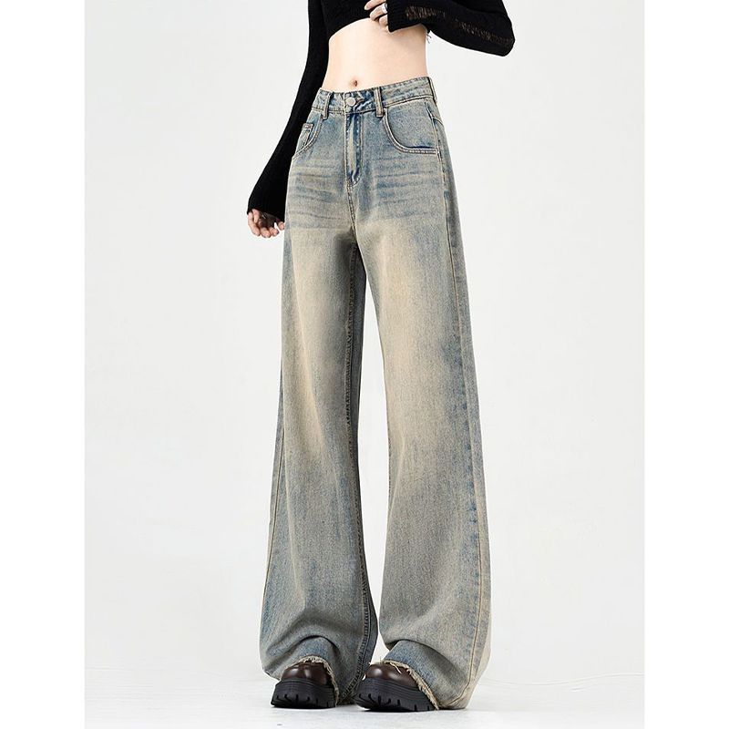Свободные драпированные широкие джинсы с высокой талией, женские новые прямые брюки в стиле ретро в стиле ретро, большие размеры