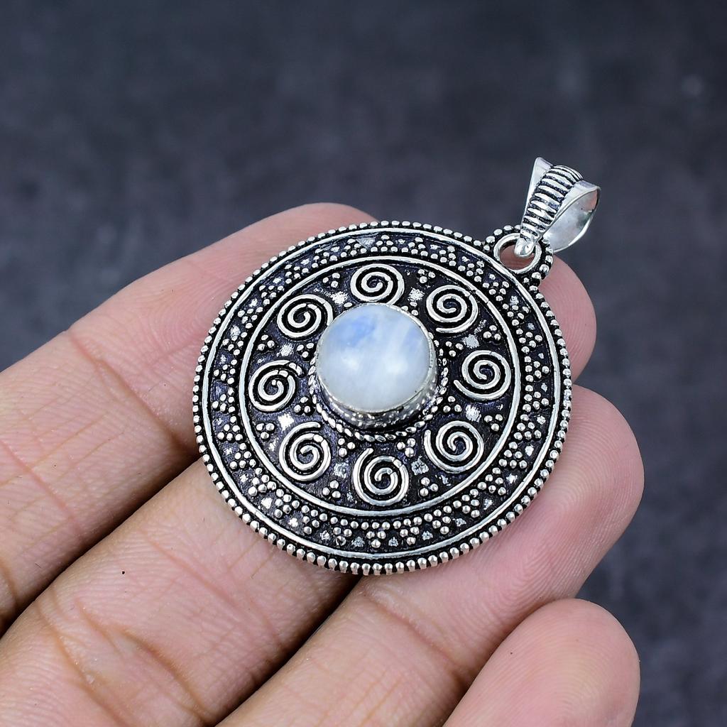 Подарочный кулон ручной работы из стерлингового серебра 925 пробы с натуральным радужным лунным камнем 1,75 дюйма