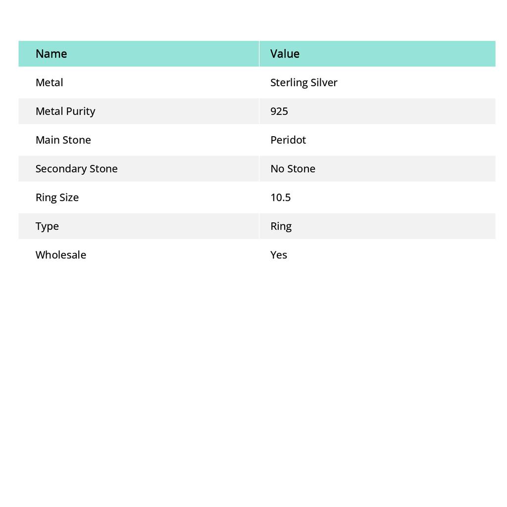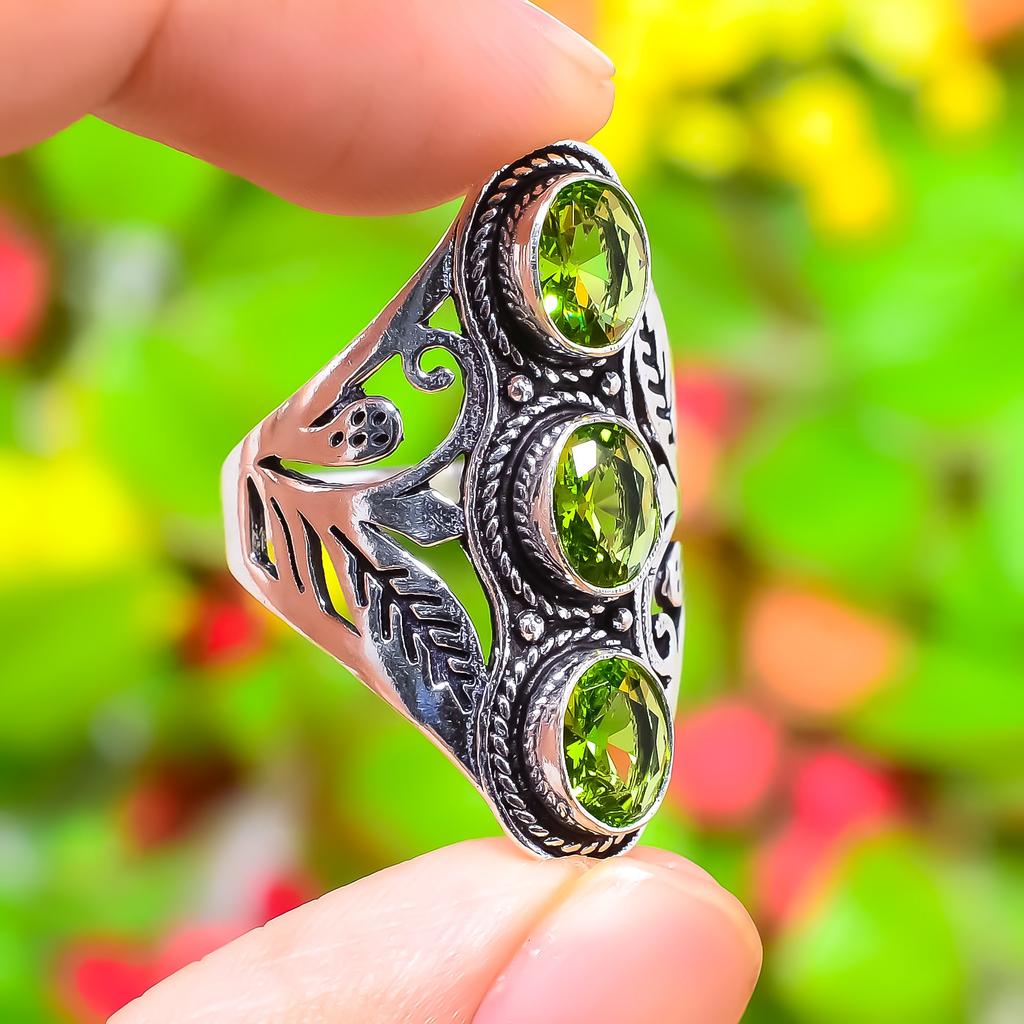 Кольцо ручной работы из стерлингового серебра 925 пробы с натуральным драгоценным камнем перидот, размер 10,5 a7W46