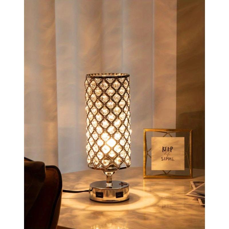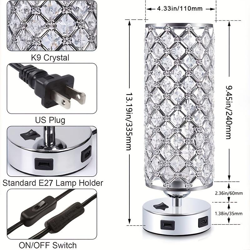 Хрустальная прикроватная настольная лампа с USB-портами и лампочкой — элегантная прикроватная лампа для спальни или офиса — лампочка в комплекте