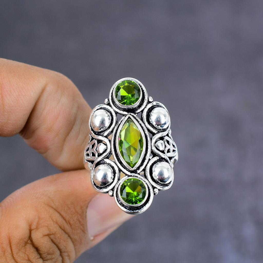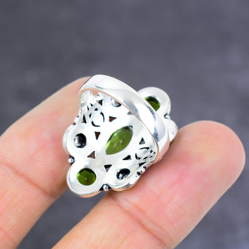 Ювелирное кольцо ручной работы из стерлингового серебра 925 пробы с натуральным драгоценным камнем перидот, размер 10 o5f15