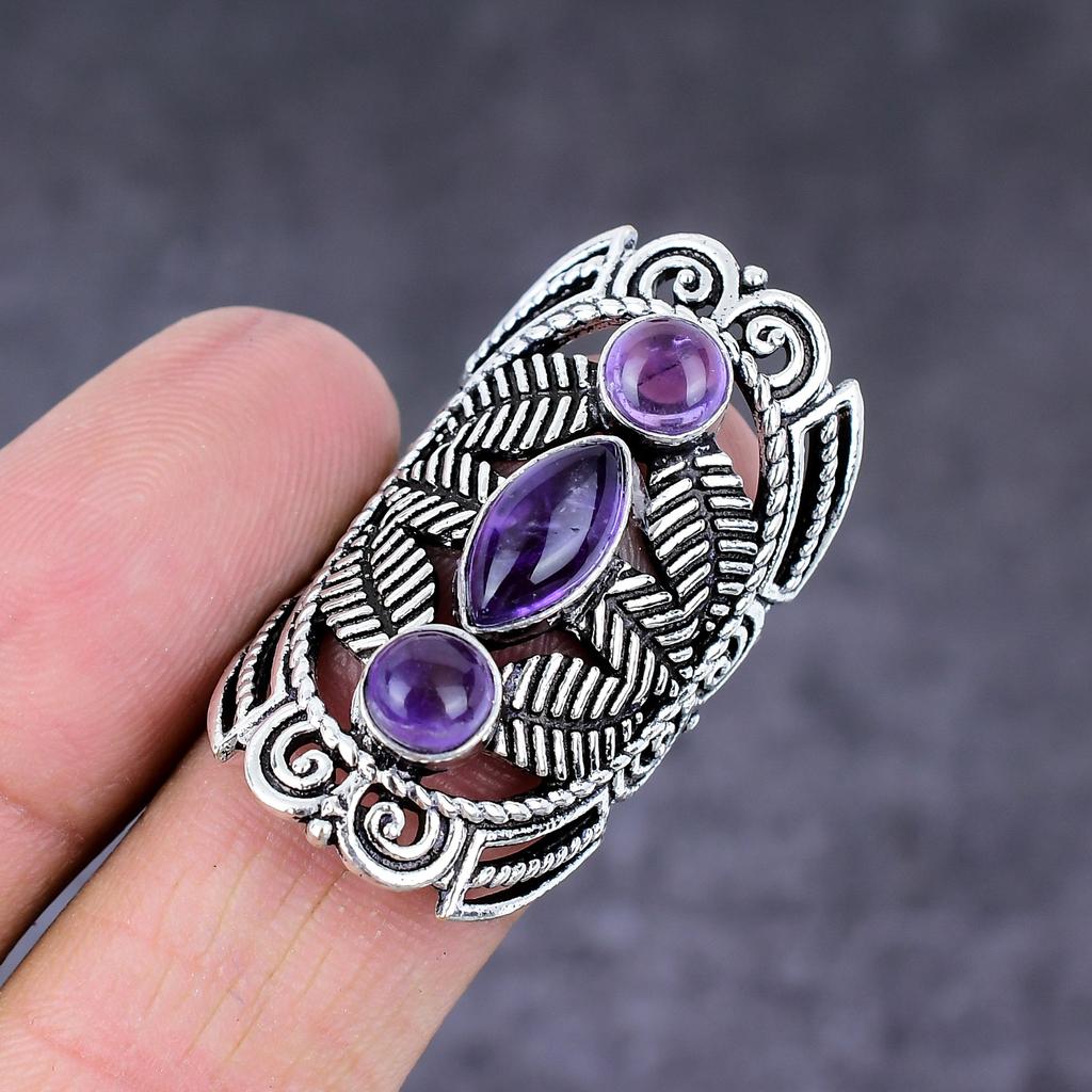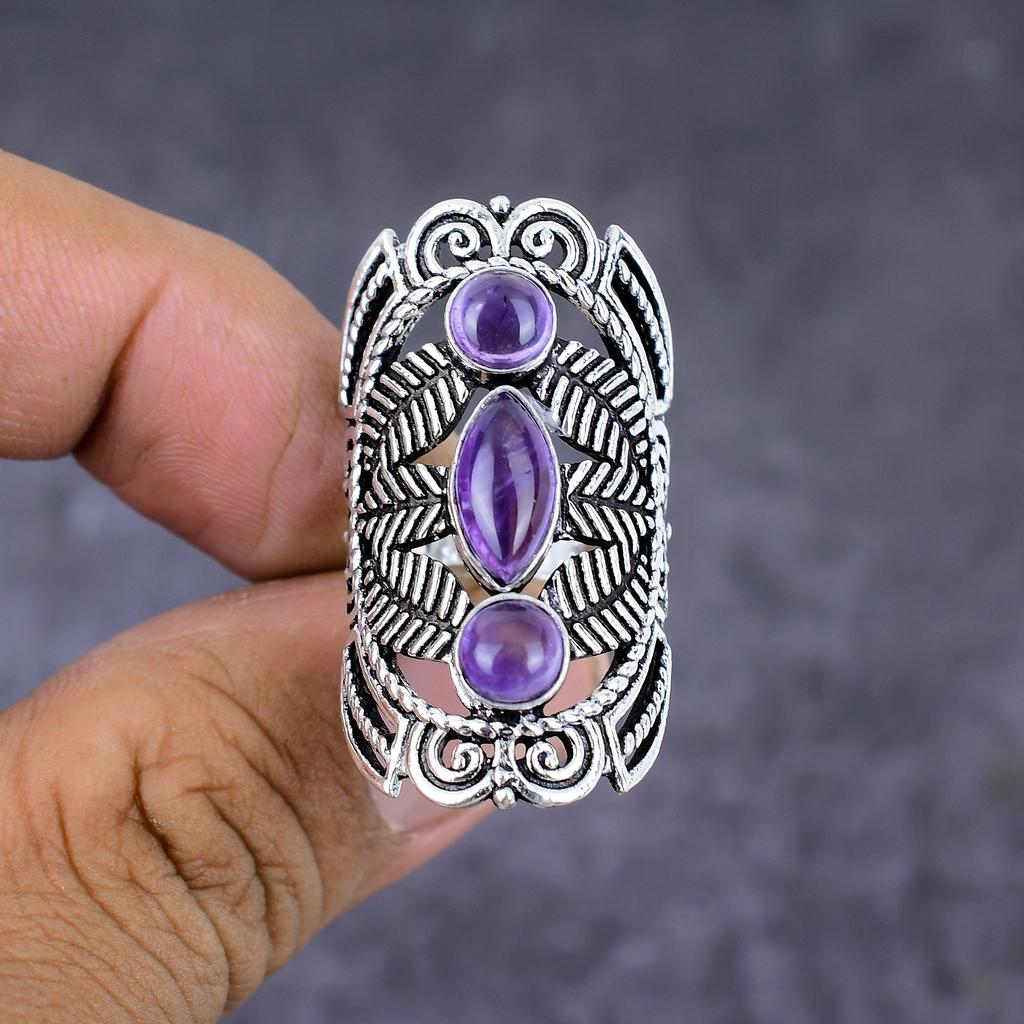 Кольцо из стерлингового серебра 925 пробы с натуральным шалфейным аметистом ручной работы, размер 6,5 g7c09