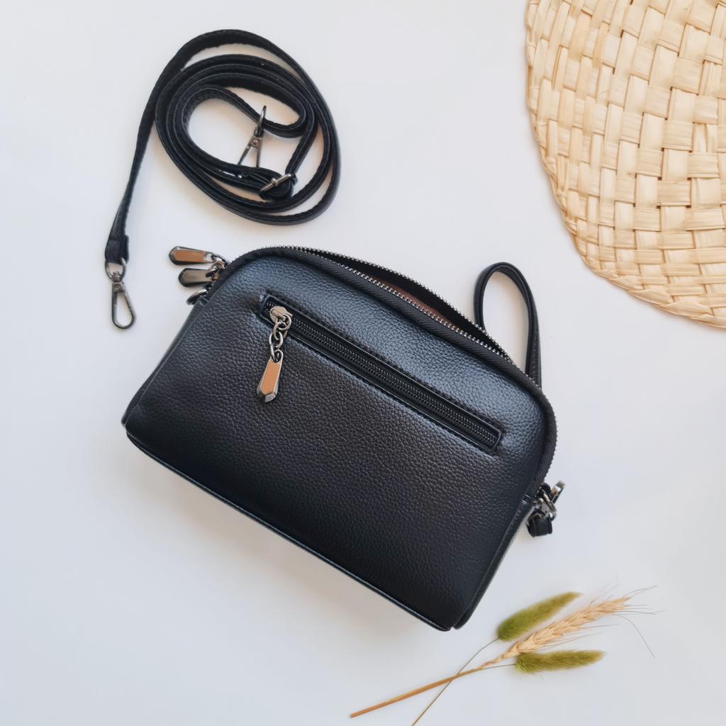 Соответствует описанию, маленькая, очень симпатичная. удобная. Два отделения на молнии, молнии рабочие. Посторонних запахов нет , рекомендую.