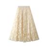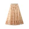 Qooth Женская элегантная тюлевая юбка-пачка с цветочным принтом, новая офисная женская сетчатая плиссированная юбка на весну и лето QT2326