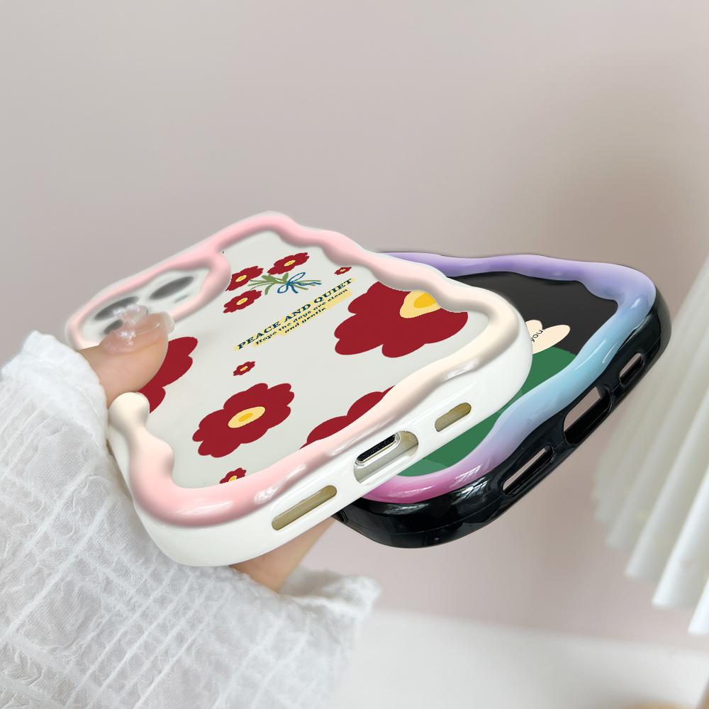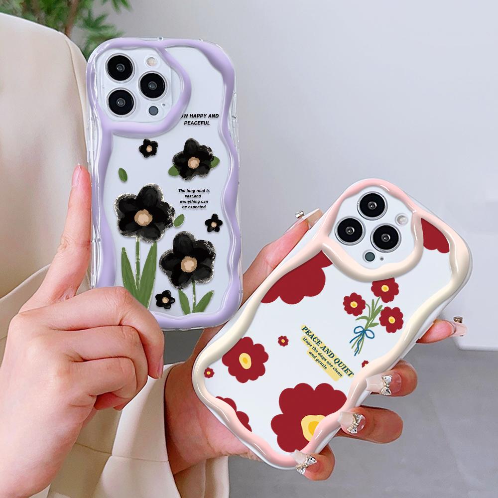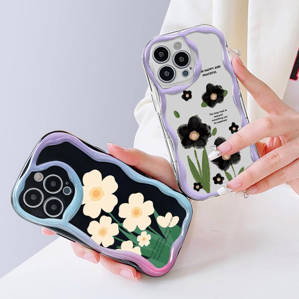 Чехол для телефона с рисунком цветов для iPhone 15, 14, 13, 12, 11, Samsung Galaxy A52, Xiaomi Redmi 14, 13C, кремовый текстурированный корпус, мягкий чехол с волнистыми краями