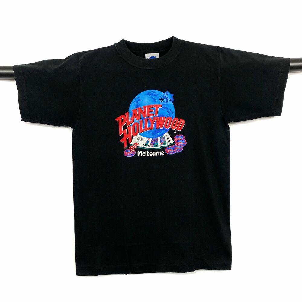 Винтажная черная футболка унисекс с сувенирным рисунком Planet Hollywood "Мельбурн"