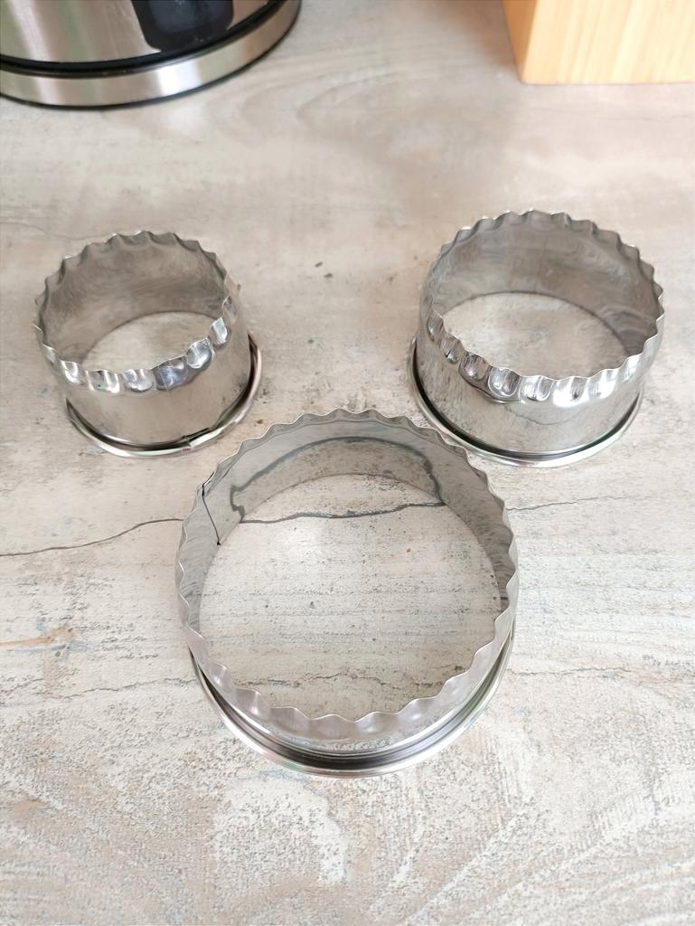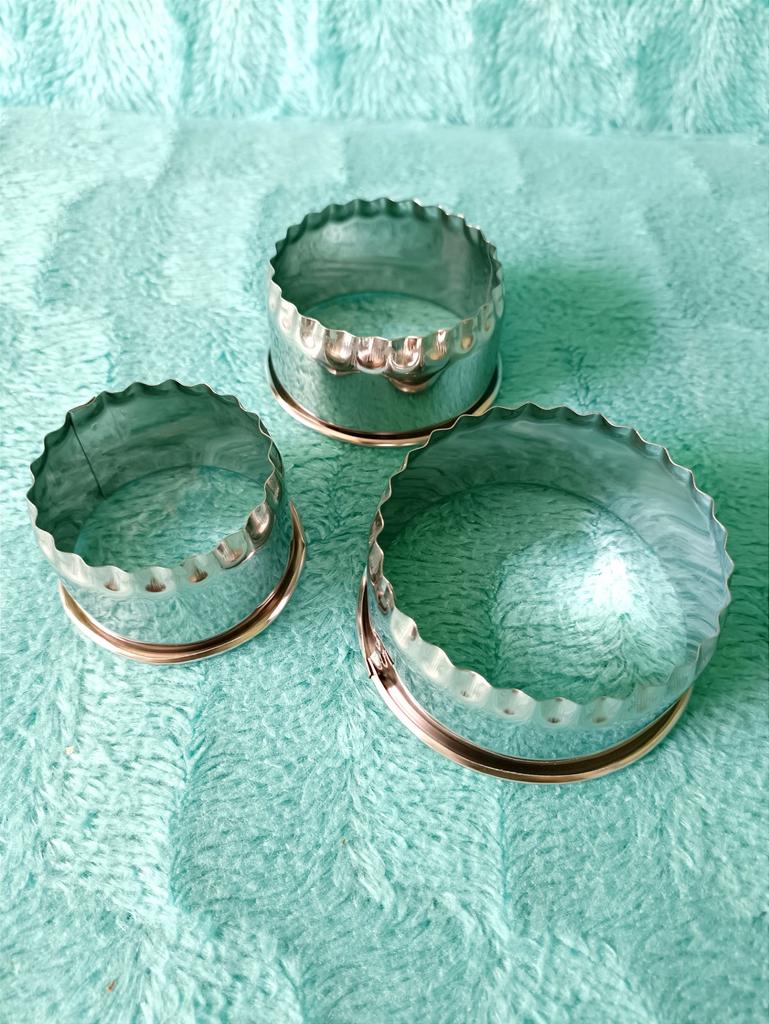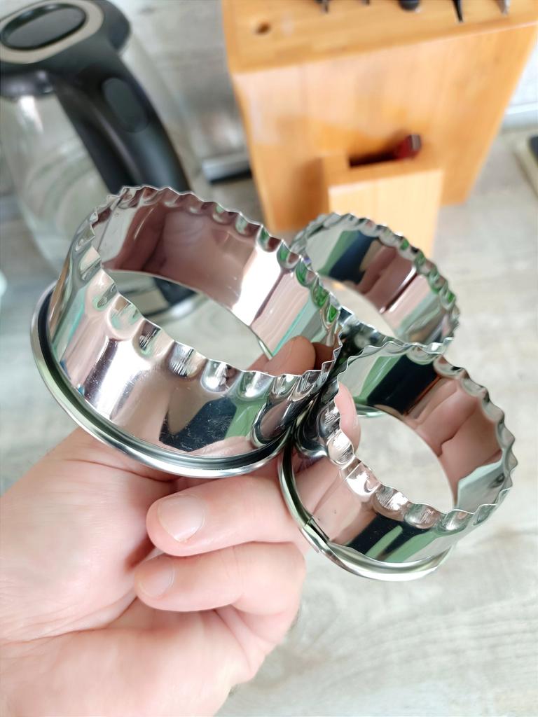 Круглые формы для вырубки теста🥟 Решила прикупить набор формочек для вырубки теста для пельменей и вареников, а то пользовались обычным стаканом, и не пожалела! ✔️упакованы в прозрачный пакет и почтовый пупырчатый пакет; ✔️доставка заняла месяц, так как посылка была сборной; ✔️материал - нержавеющая сталь; ✔️в наборе 3 круглые формы диаметрами: 8 см, 7 см, 6 см; ✔️очень острые, вырубают отлично. Очень довольна приобретением! Спасибо продавцу и любимому Джум❤️! Товар и продавца рекомендую 👍🏼! Всем приятных покупок!