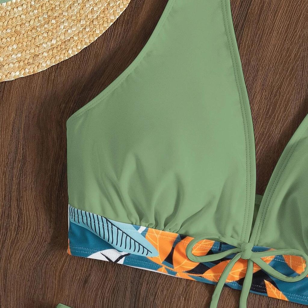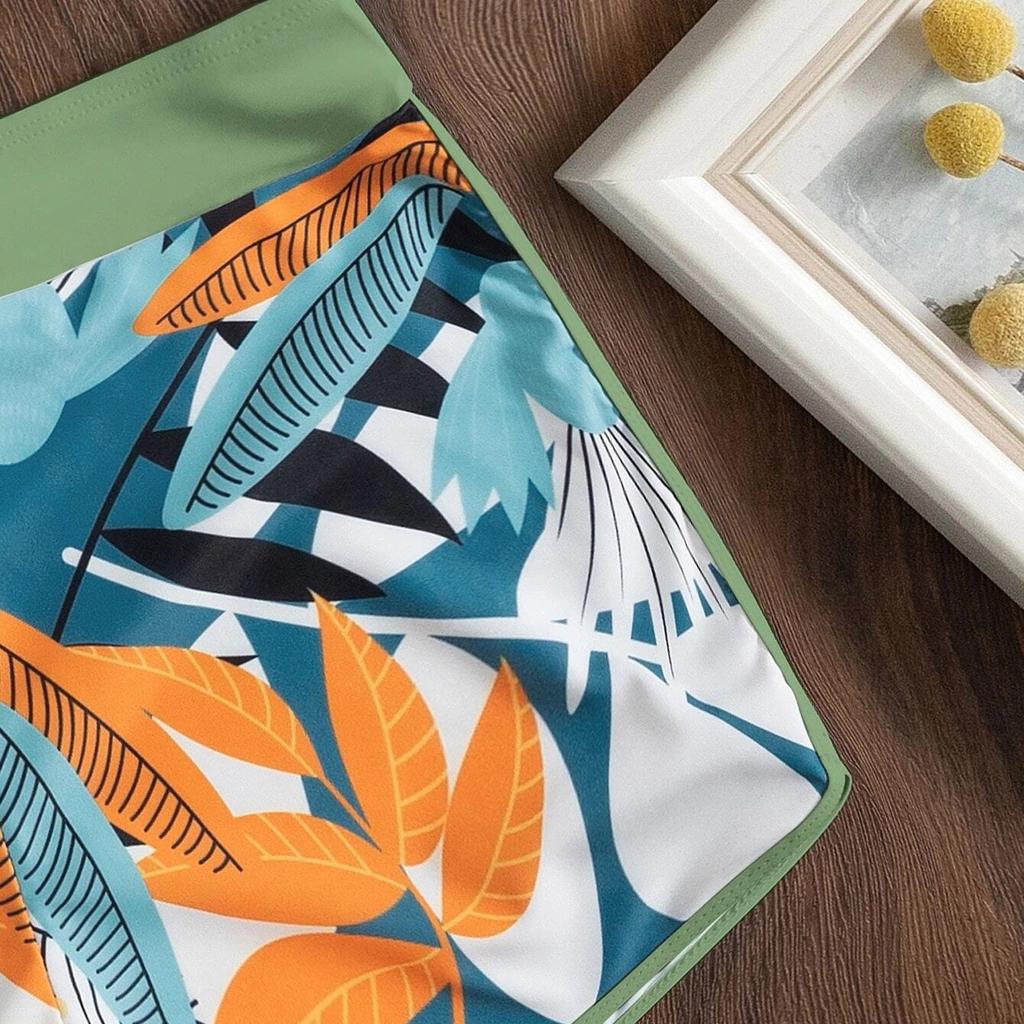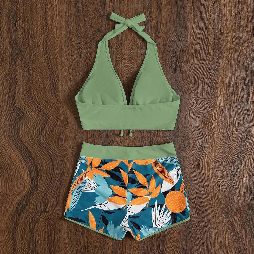 Модный женский купальник-боксер с высокой талией и однотонным лоскутным принтом, бикини