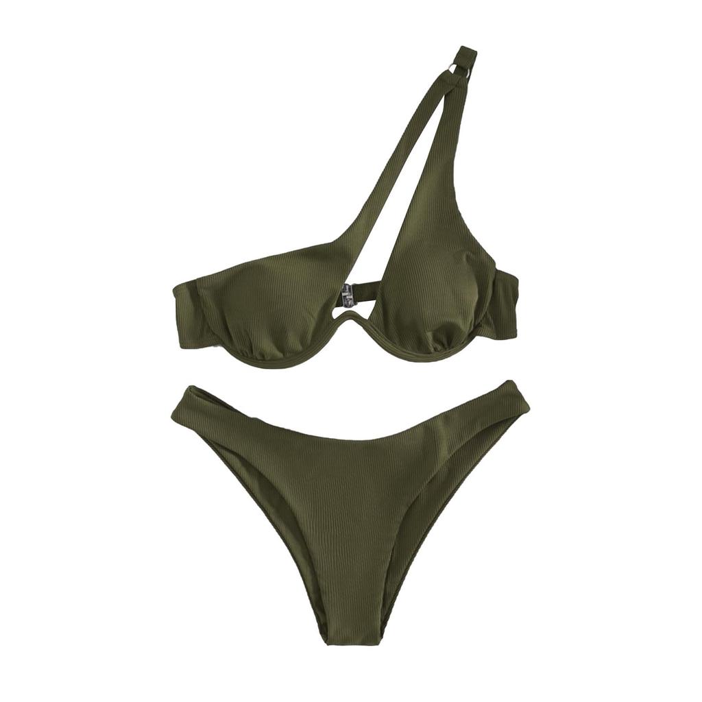 Женский раздельный сексуальный бикини, однотонный купальник со стальным кронштейном на одно плечо
