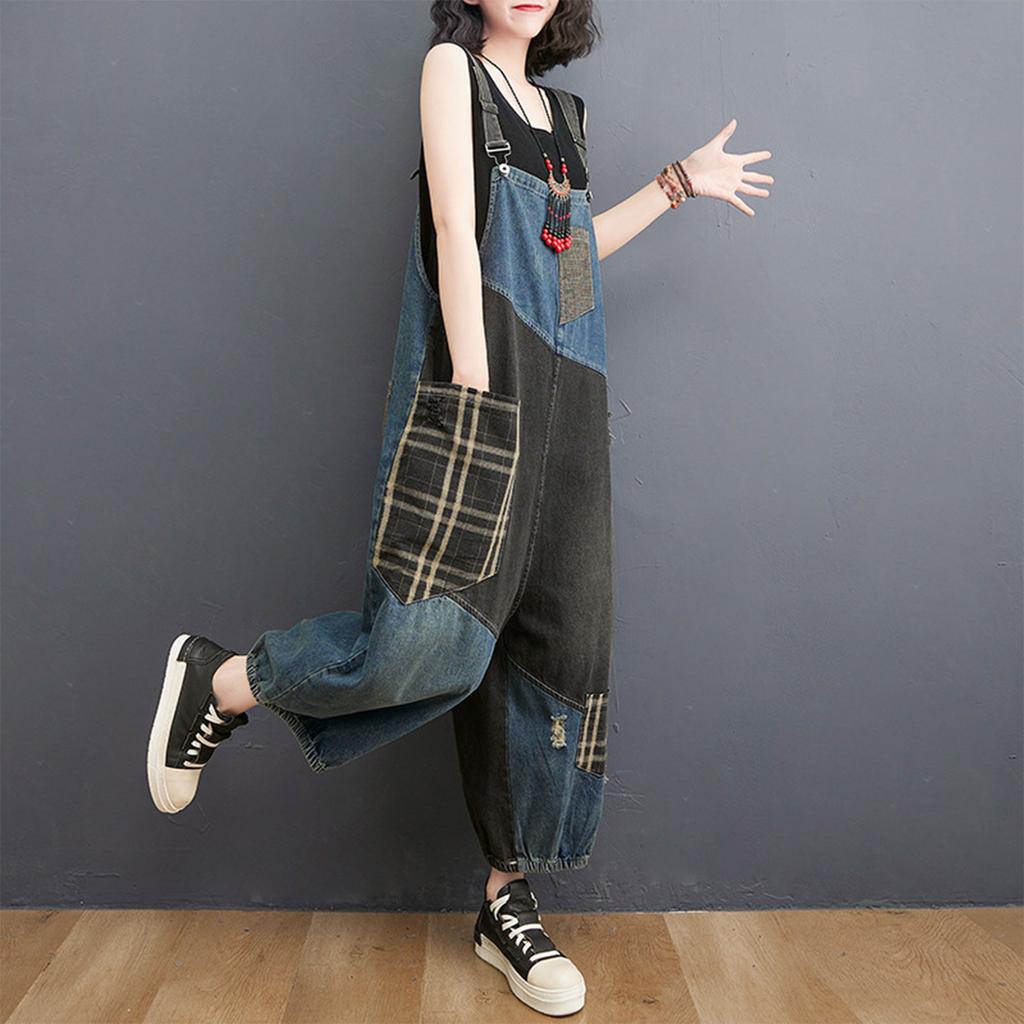 Женские модные джинсовые рюкзаки большого размера, свободные брюки с высокой талией в клетку, цельные широкие девятиминутные брюки — купить товар онлайн с бесплатной доставкой по всему миру!
