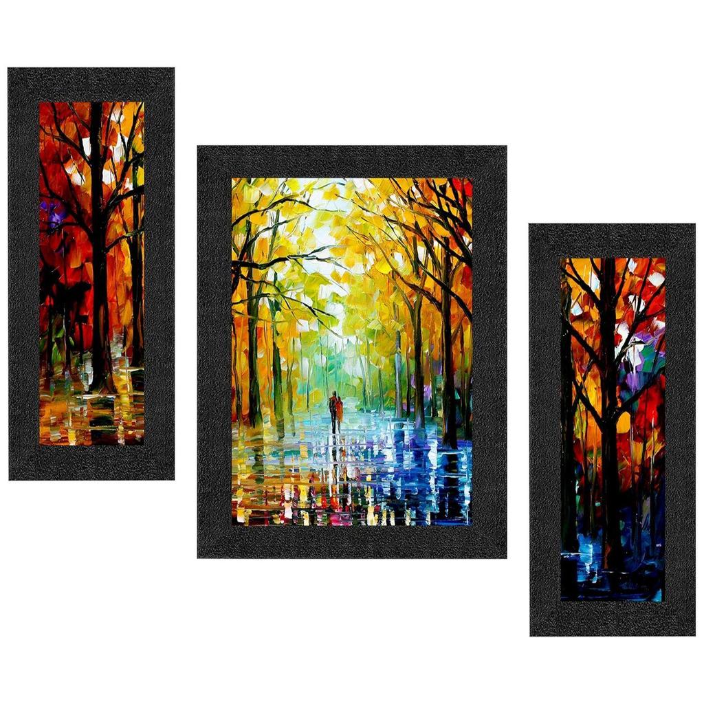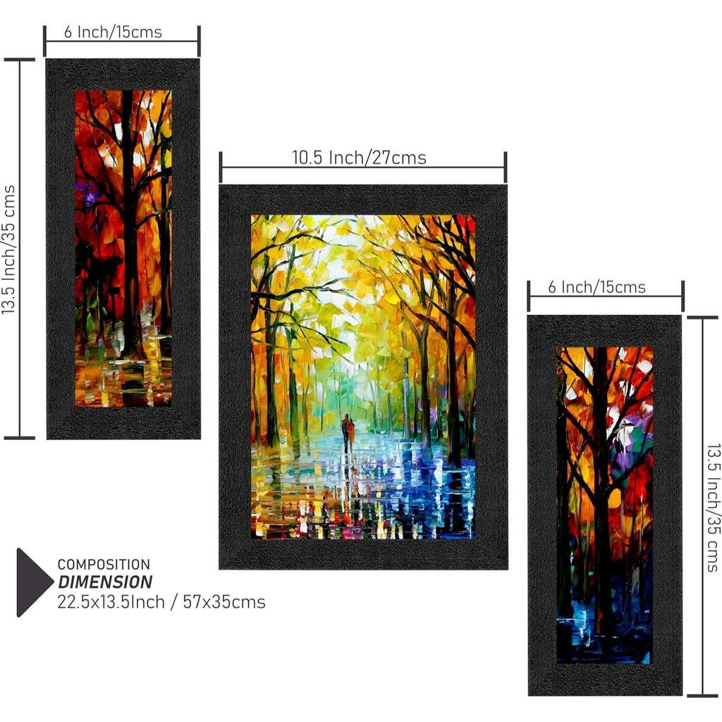 Набор из 3 прогуливающихся пар в лесу, акварель с УФ-покрытием, домашний декоративный подарок, картина в рамке, 13,5 дюймов X 22,5 дюймов, разноцветный