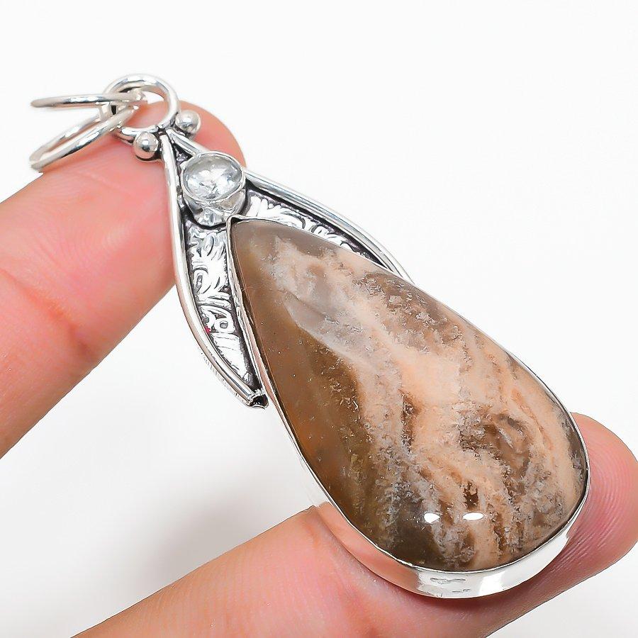 Подвеска из натурального русского дендритного серебра 925 пробы с белым топазом 2,76 дюйма
