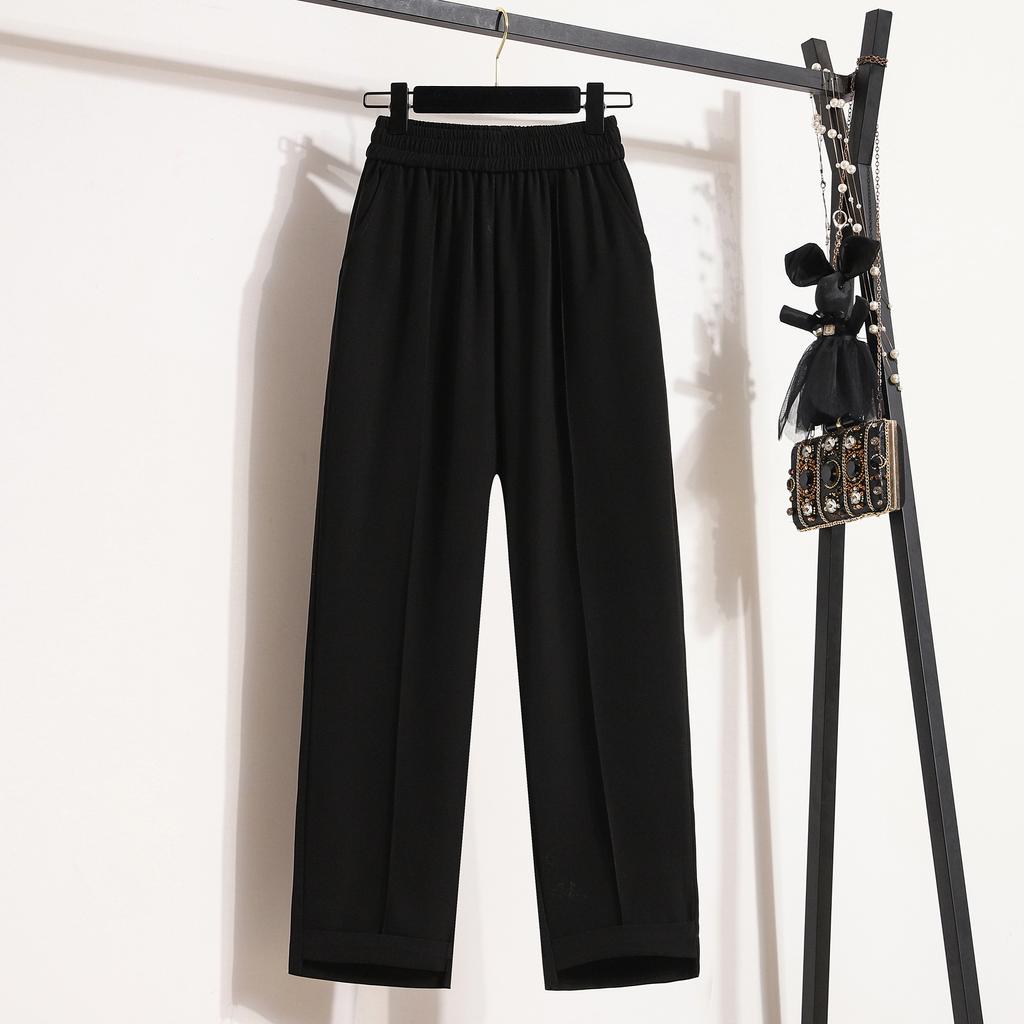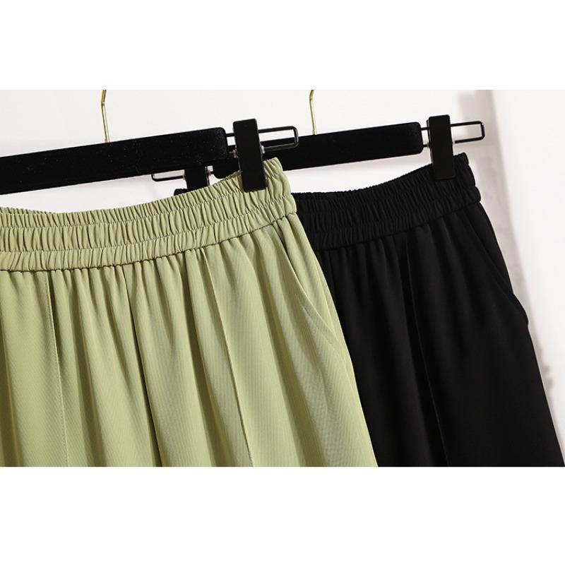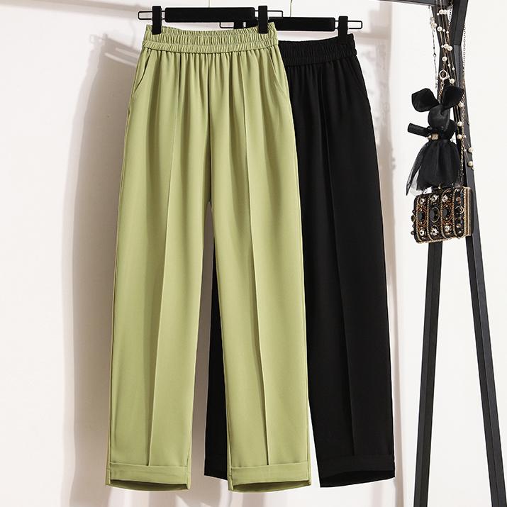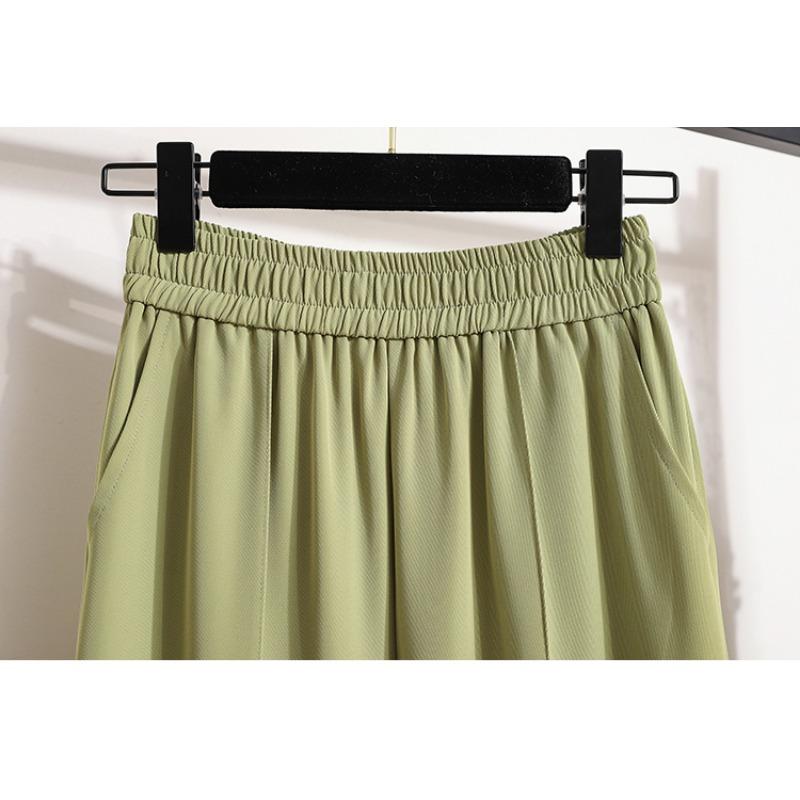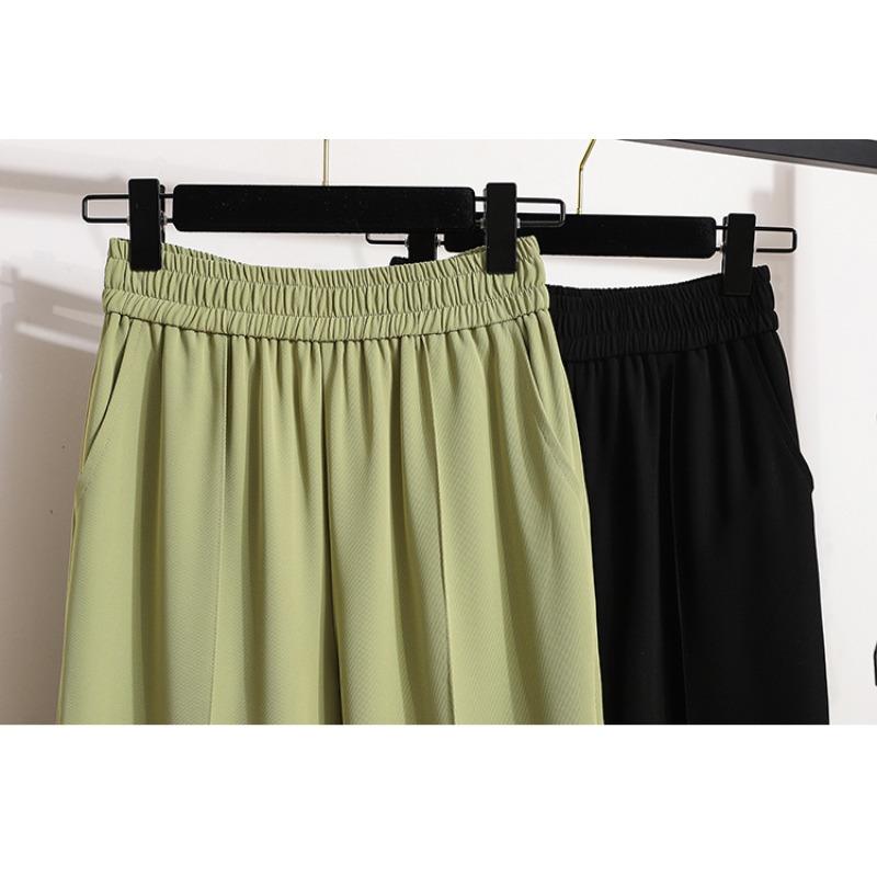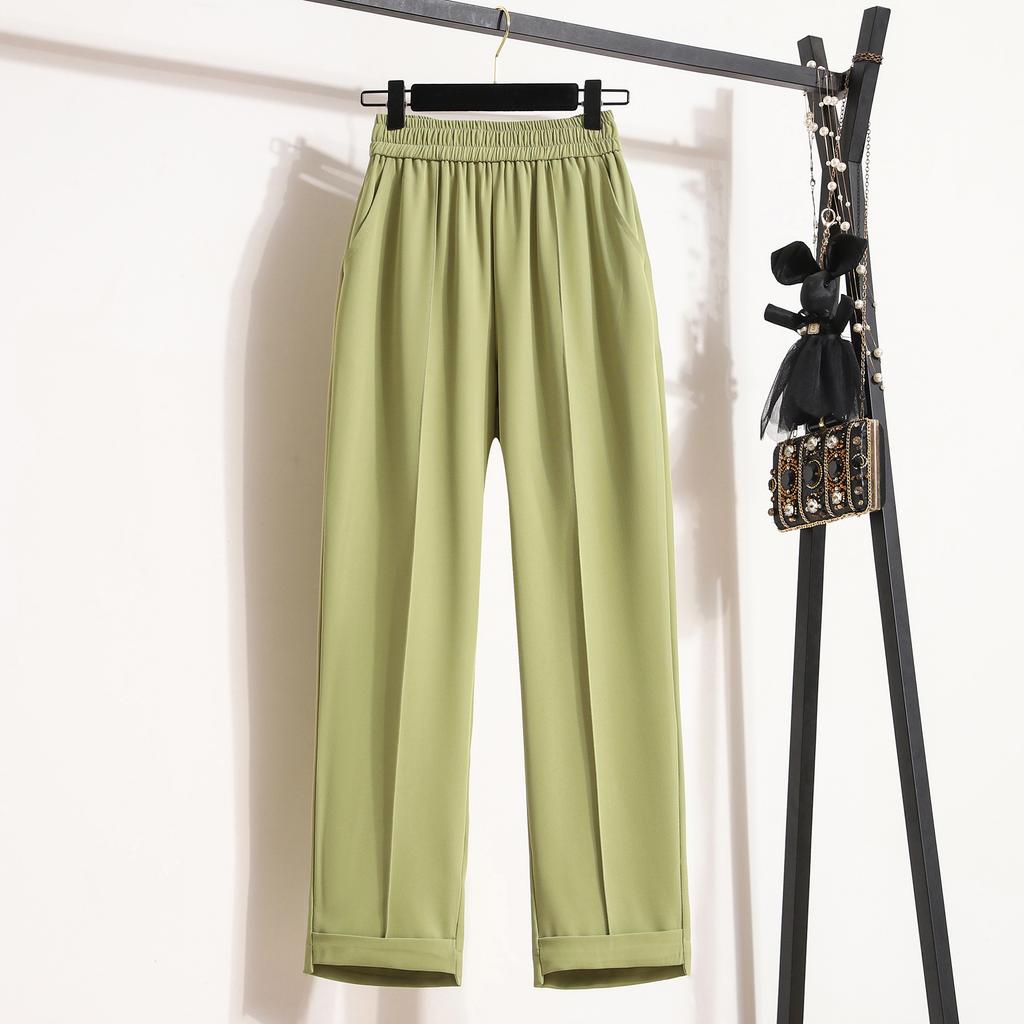 DIMANAF Весна Плюс Размер Длинные Брюки Женские Эластичные Повседневные Свободные Шаровары Высокая Талия Однотонные Зеленые Свободные Базовые Брюки Широкие Брюки Зеленые 5XL