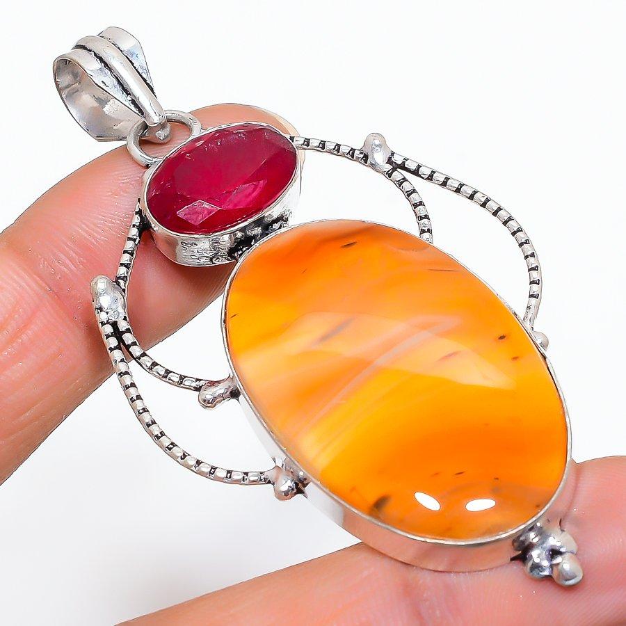 Подвеска из стерлингового серебра 925 пробы с натуральным агатом Монтана ручной работы 2,76 дюйма c2L79 — купить товар онлайн с бесплатной доставкой до всему миру!