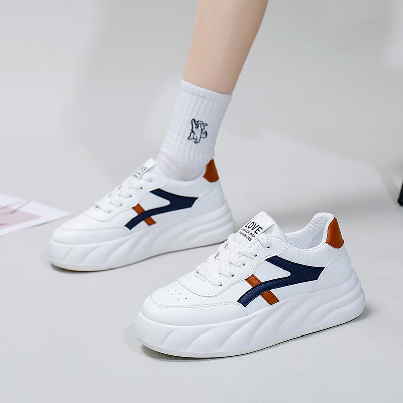 Дизайн с толстой подошвой подчеркнет ваши длинные ноги: если вы хотите выглядеть высоко, вам не обязательно нужны высокие каблуки, вам также подойдет пара белых кроссовок на платформе с высотой каблука 4 см для увеличения высоты повседневной обуви.