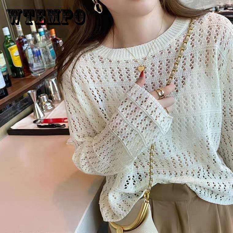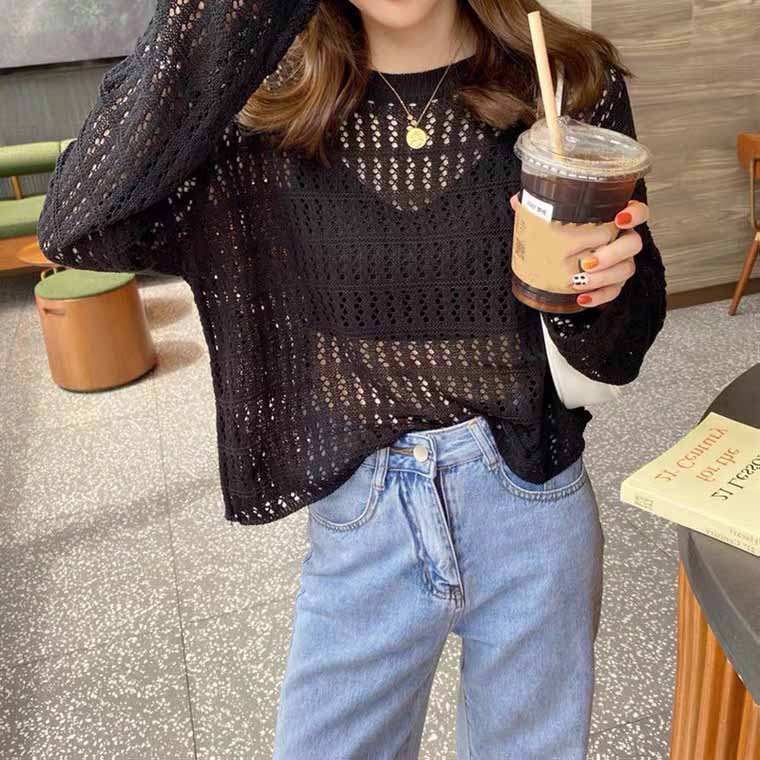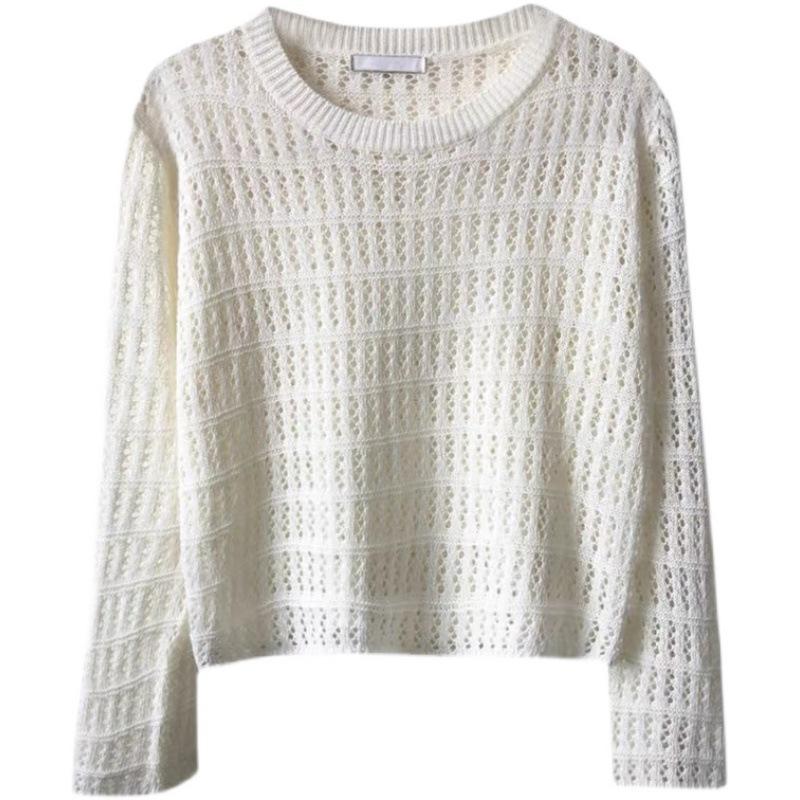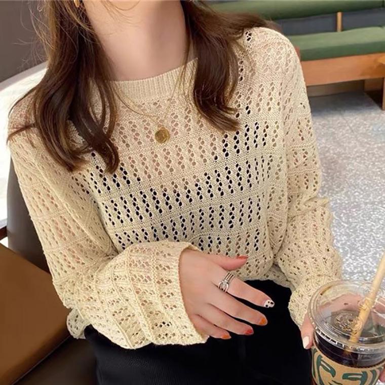 Полый трикотаж, женский тонкий свитер, осеннее платье, новый дизайн, маленькое свободное пальто с длинными рукавами, топ