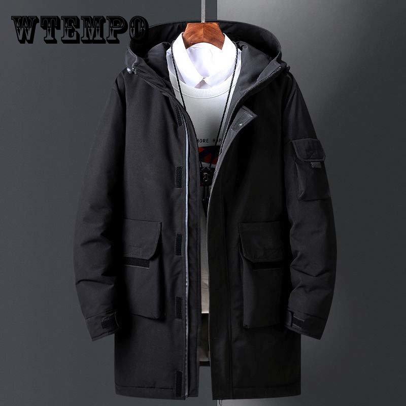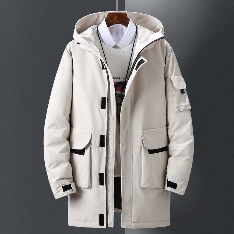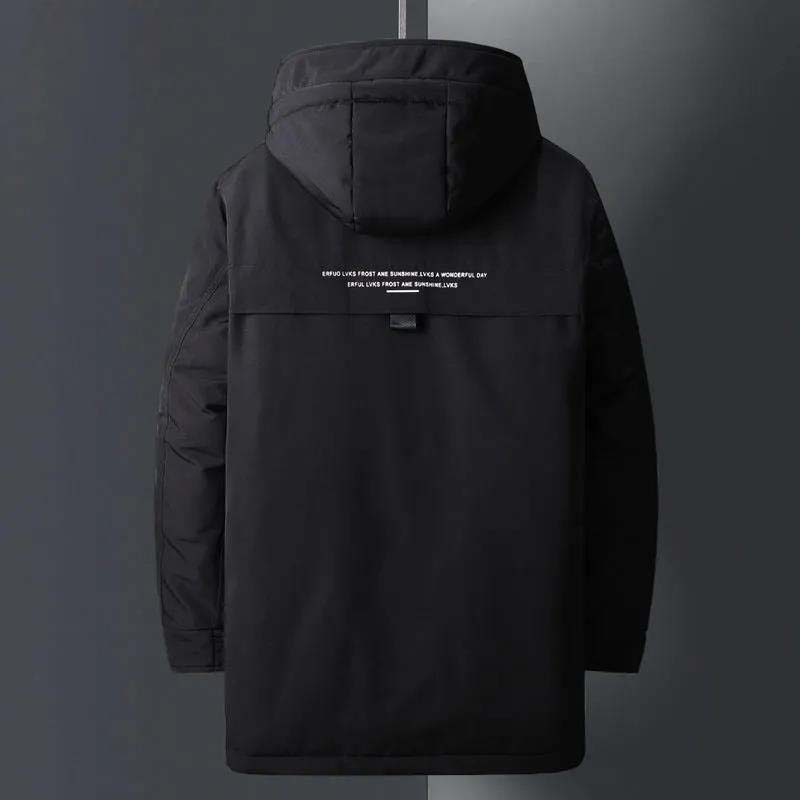 Зимний мужской пуховик средней длины, теплая и толстая куртка с капюшоном