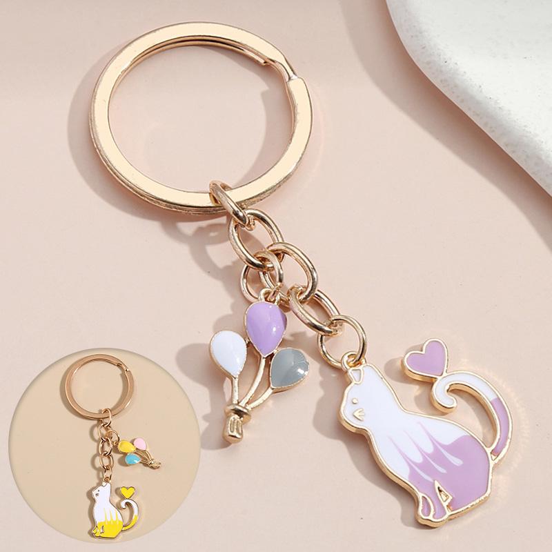 Брелок с воздушным шаром в виде кота с изображением кота, кольца, держатель, подвески, декоративные подарочные аксессуары