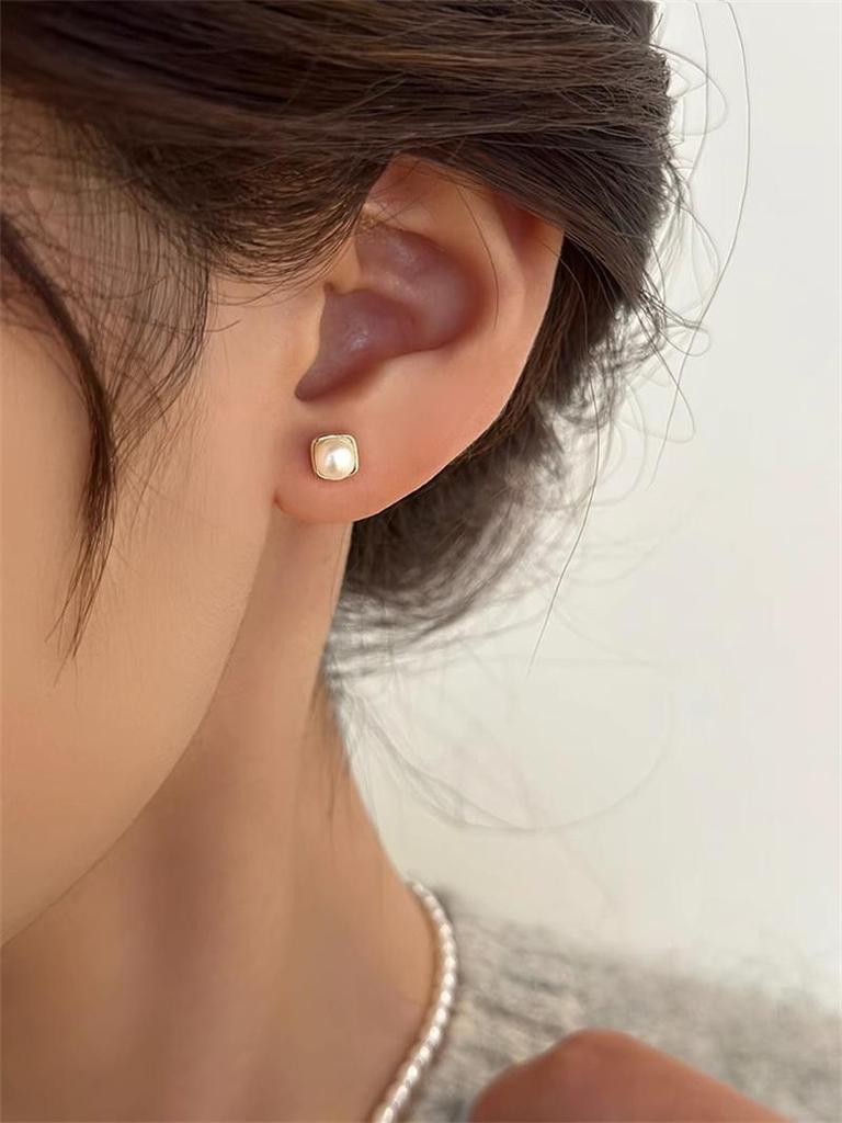 Женские серьги с квадратным пресноводным жемчугом