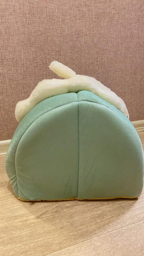 Очень милая лежанка для животных 🐾 Высота по спинке — 30 см, Высота по передней части — 14 см У меня есть чихуашка по имени Мартин и он довольно часто любит побыть именно в лежанке) И вот я решила купить что-то прелестное для него 🥰 Правда, он вернется домой только завтра… так что обновлю фото чуть позже) - Выбрала зеленый вариант в виде дракоши. Внешне выглядит также, как на фото продавца; - Пришла свернутой в относительно небольшом пакете. Форма, в целом, была нормальная после распаковки, но перекошенность как будто немного осталось; - Подушка повторяет внутреннюю форму, набита нормально; - Есть висюлька для кошек, но в моем варианте она не особо нужна; - Ткань довольно мягкая и нежная, выглядит хорошо. Приятная лежанка, очень милая) Советую)
