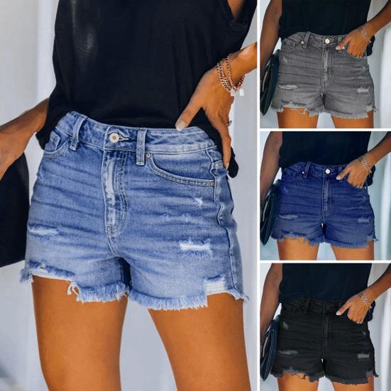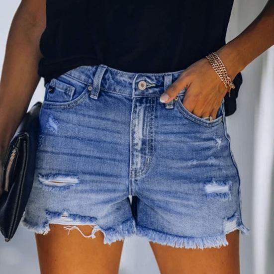Характеристики: Женские джинсовые шорты имеют такие особенности, как завышенная талия, рваные края, потертый дизайн, завышенная талия, однотонный цвет, облегающий крой и дизайн из мягкого материала.