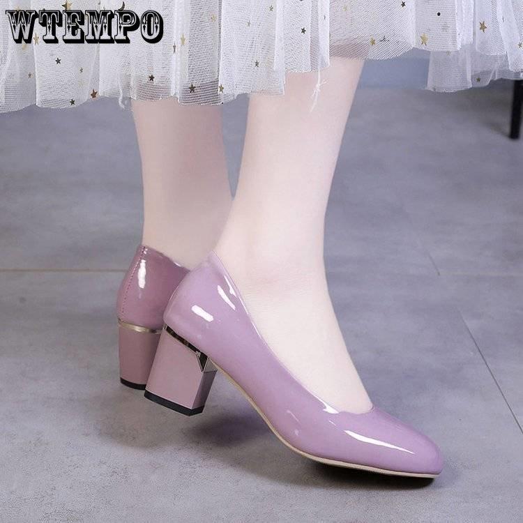 Женская обувь с квадратной головкой и неглубоким носком, толстые одинарные туфли, лакированные кожаные туфли и рабочая обувь, женские черные туфли — купить товар онлайн с бесплатной доставкой по всему миру!