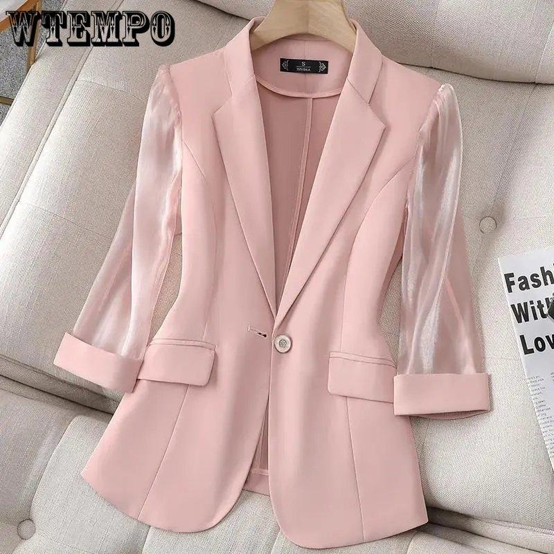 Розовый костюм, женский тонкий пиджак с рукавом три четверти, летний повседневный простой костюм