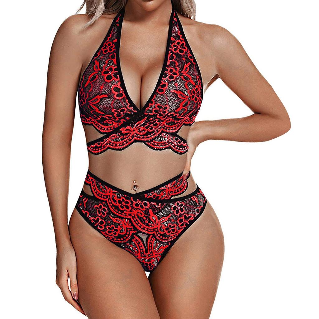 Женский комплект сексуального нижнего белья, кружевной бюстгальтер с вышивкой и стринги, сетчатое прозрачное сексуальное белье