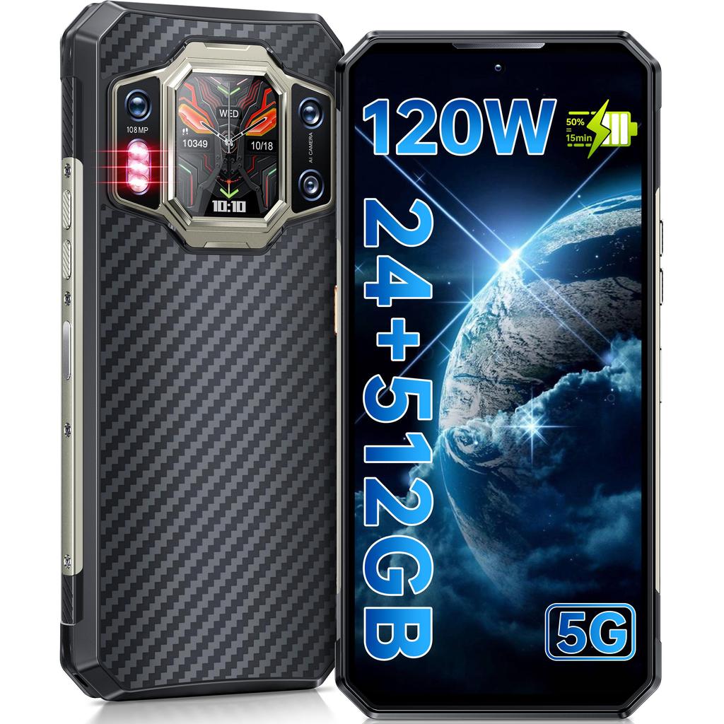 👍 Преимущества: – Большой экран 6.78 дюйма с разрешением 1080x2460 и частотой 120 Гц. – Малый экран 1.75 дюйма на котором установлены часы. Широкий выбор предустановленных циферблатом для часов. – Защита по стандартам IP68 и IP69K спасёт телефон от повреждений при падении и попадании в воду. – За высокую скорость работы отвечает 24 Гб оперативной памяти и процессор MTK Dimensity 8050. – Основная камера 108 мегапикселя позволит снимать потрясающие фото и видео. – Ёмкая батарея 11000 мАч позволяет смартфону работать на одном заряде до 12 часов в режиме игры. – Два динамика обеспечат плотный и насыщенный стерео звук.