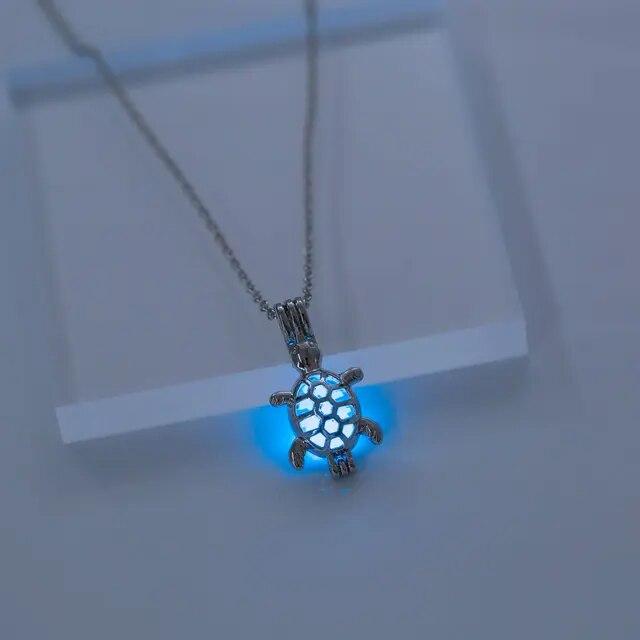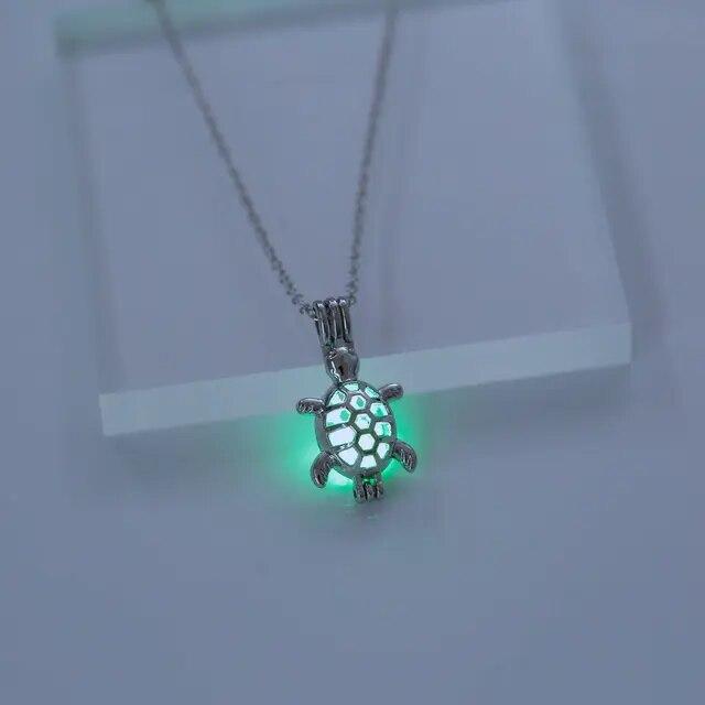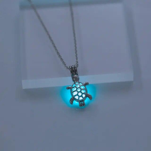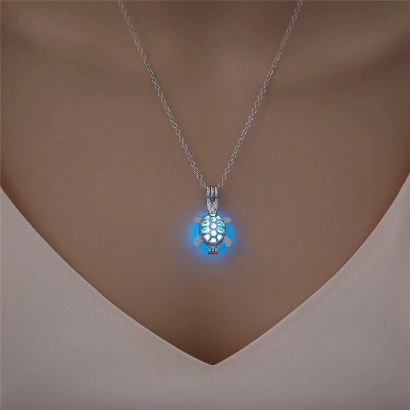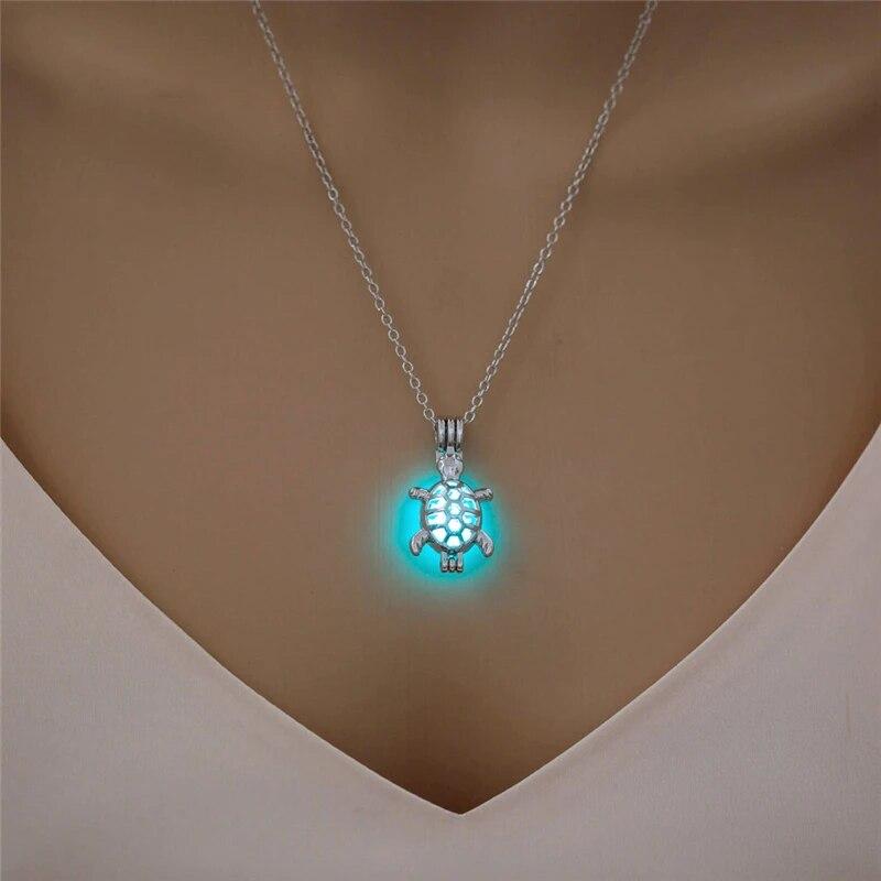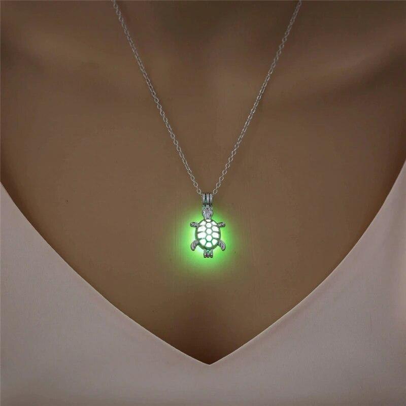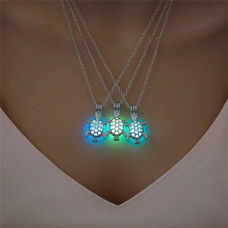 Светящаяся полая подвеска в форме черепахи, винтажное ожерелье с изображением животных, светящееся в темноте, классическая цепочка, ювелирные аксессуары для женщин