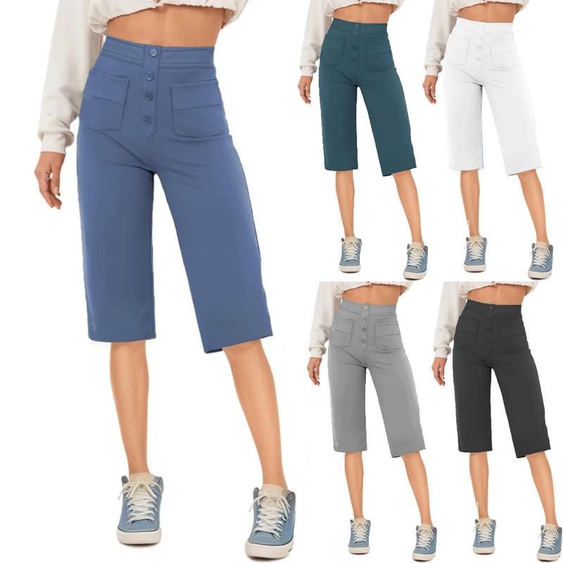 Модные женские повседневные прямые брюки с высокой талией и пуговицами, эластичные узкие шорты — купить товар онлайн с бесплатной доставкой по всему миру!
