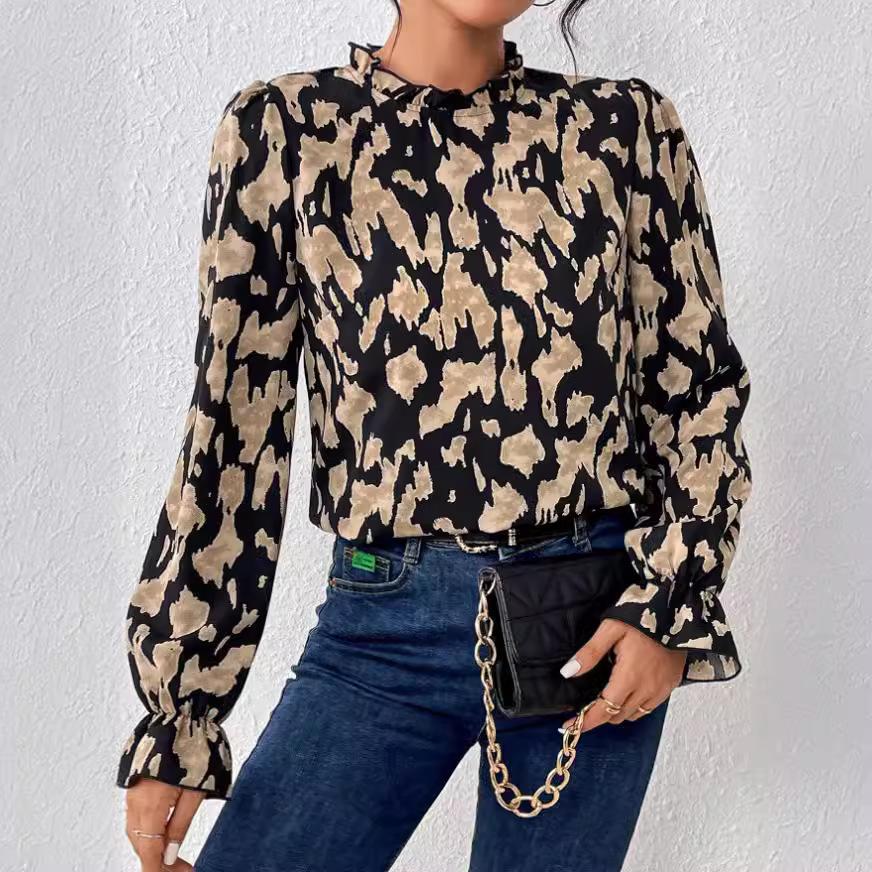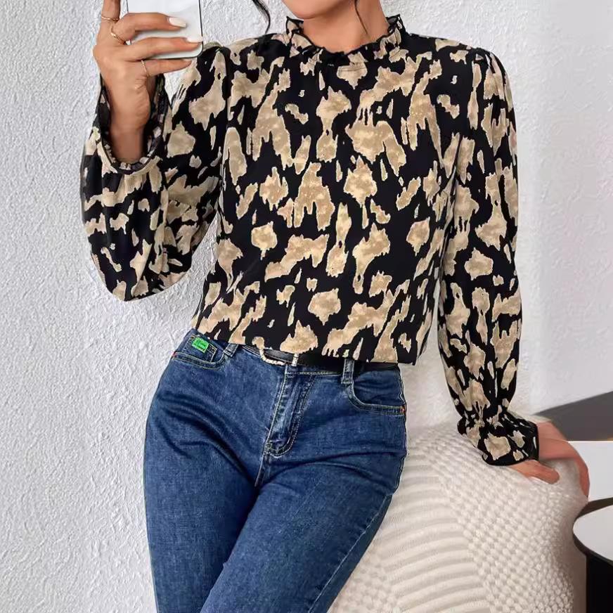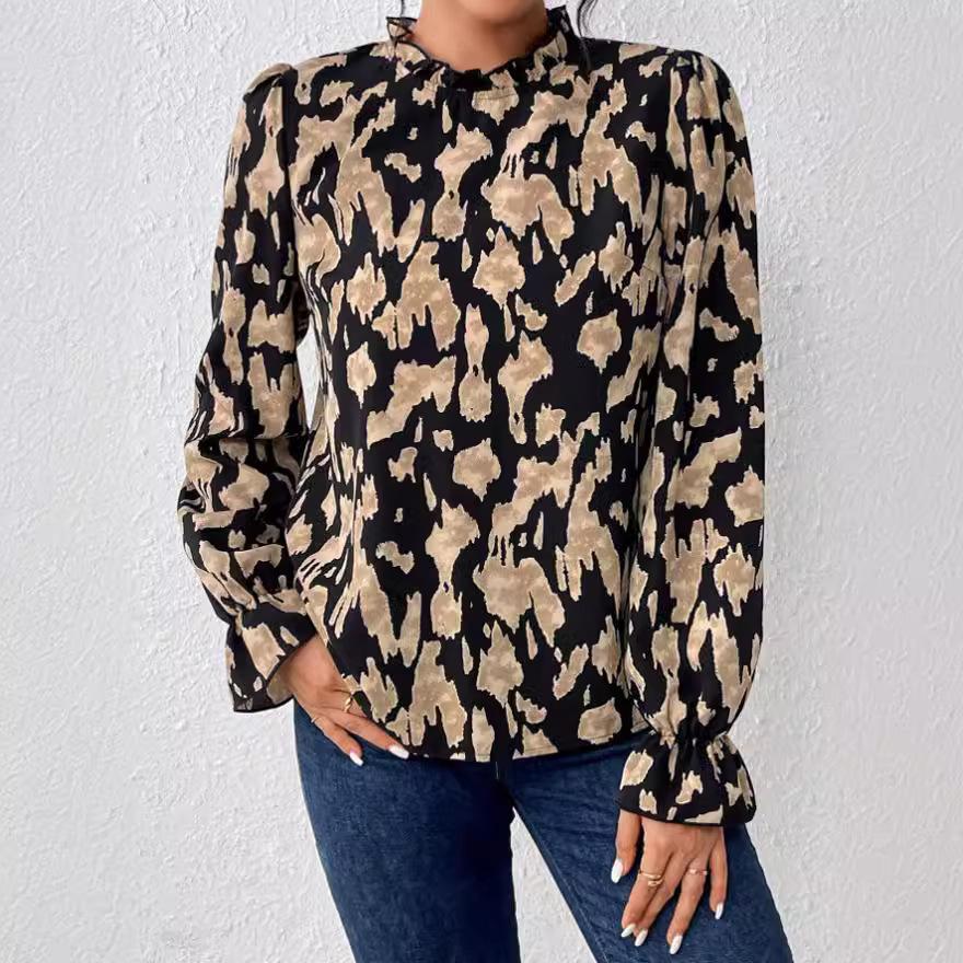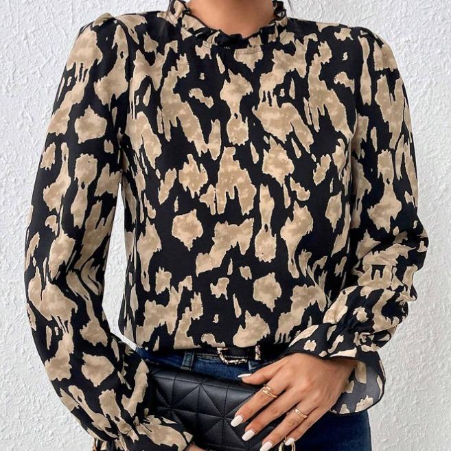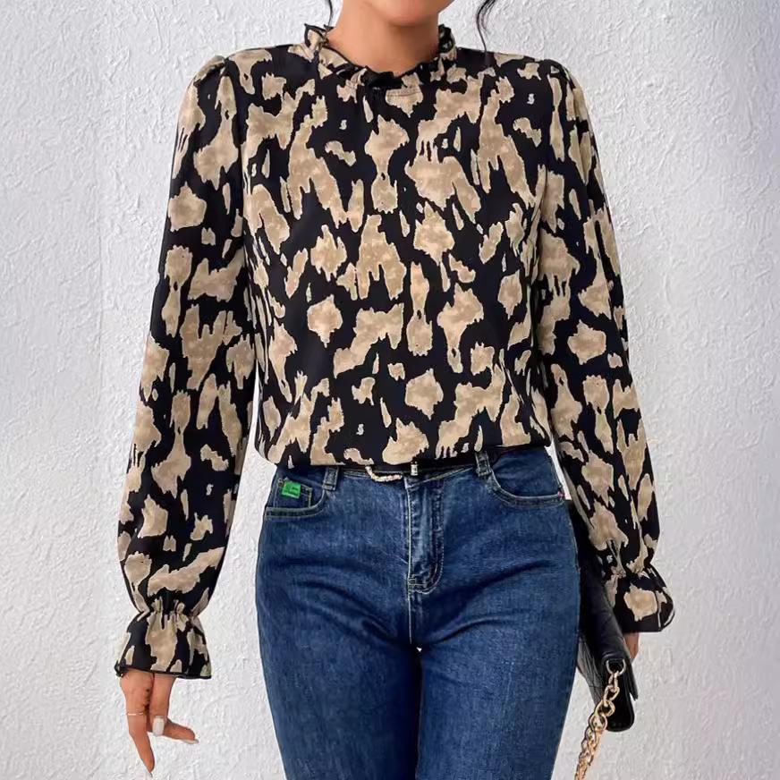 Женская весенняя элегантная рубашка с оборками и воротником-фонариком, блузка, топ