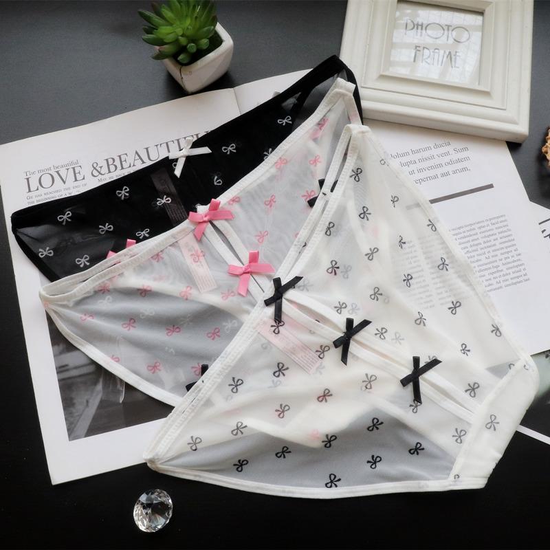 Сексуальные дышащие кружевные трусики с бантом для девочек, женские трусы с низким вырезом, сохнущие на воздухе, женские трусы