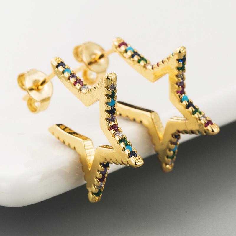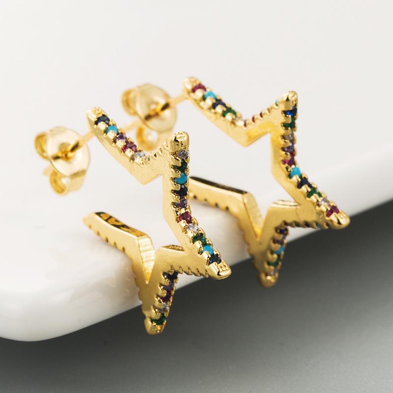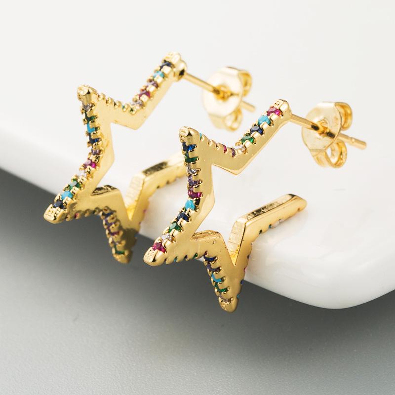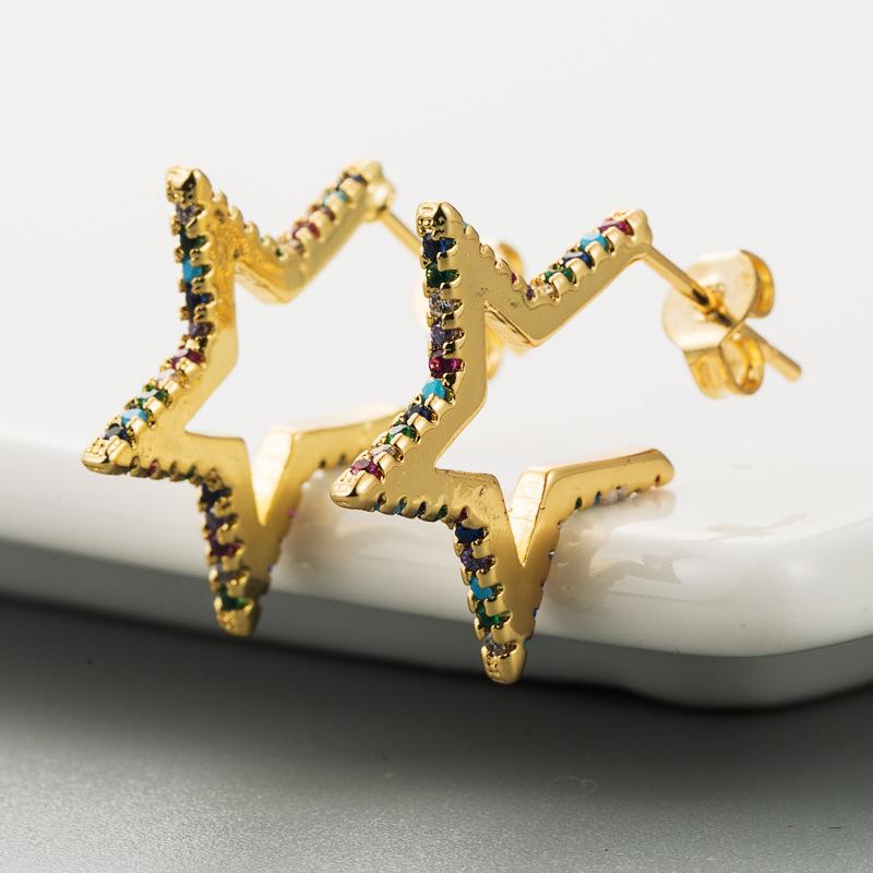 Женские серьги-гвоздики микронабор с цирконием, короткие угловые пятиконечные универсальные серьги со звездой