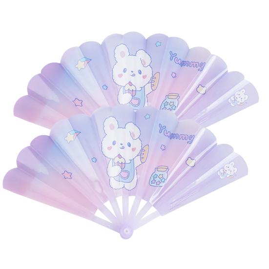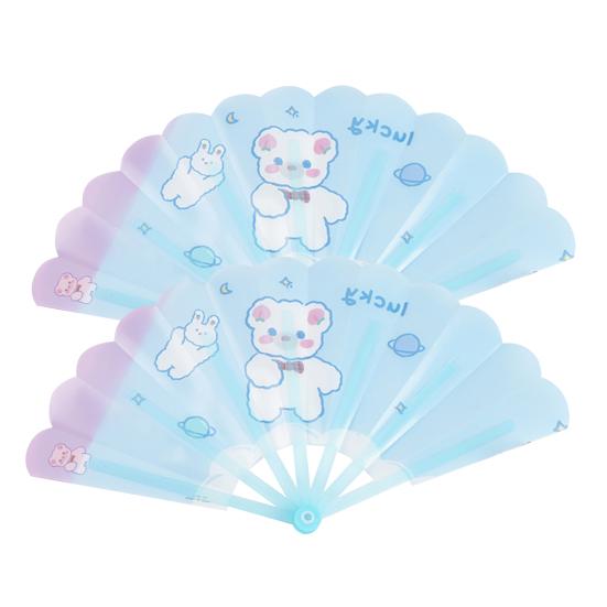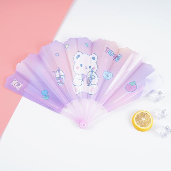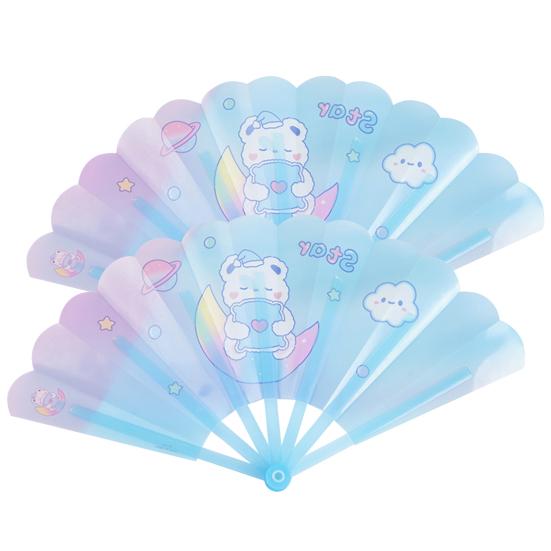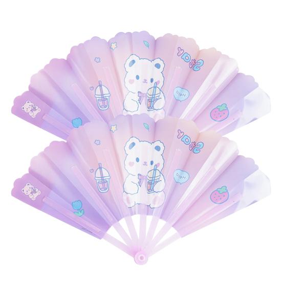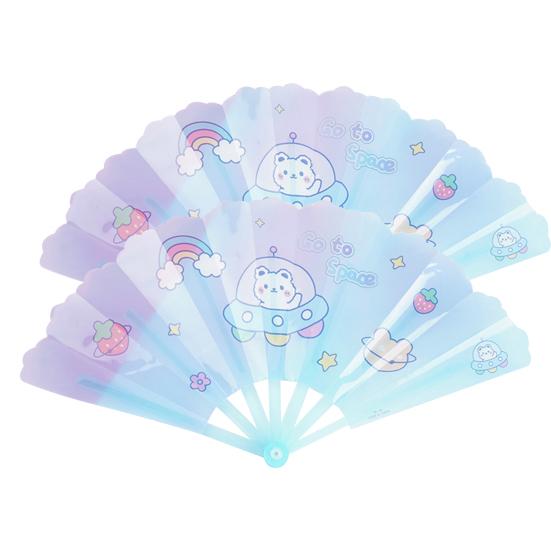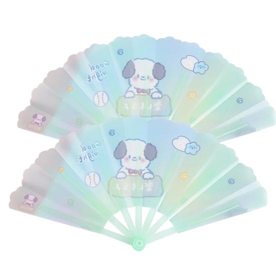 На складном веере есть изысканные мультяшные узоры, что очень красиво.