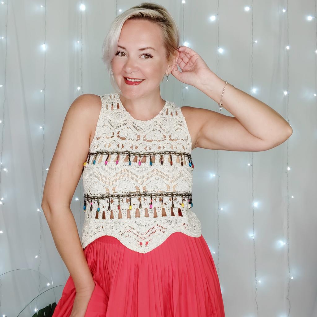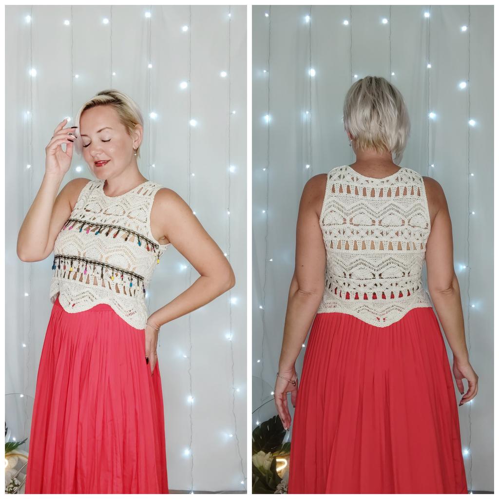 Кружевной топ - жилетка! Привет! Для любителей бохо стиля - буду рекомендовать 🔥 ‼️добавила не большое видео‼️ Ткань: Нитка фактурная, по ощущениям хлопок. Чуть тянется, но больше за счет рисунка кружева. Дизайн: Кружево достаточно интересное выполнено - этот рисунок хочется рассматривать. Полотно - фактурное и приятное к телу. Украшением служит тесьма с подвижными бусинками. Нюансы: На фото продавца еще есть оборочки у профсы рукава - в реальности их не оказалось. Качество: Претензий нет, сшита она замечательно. Цвет: Светло бежевый Размер: На мне единый размер. Мои параметры: рост 172 см 98/76 см Детали: Длина 49 см ОГ 90 до 104 см ОТ 92 до 100 см Резюмирую: Носить вещь можно по разному и как топ и как жилетку на футболку или платье. Буду рекомендовать 👍 Я не прощаюсь, M_K Кружевная_жилетка