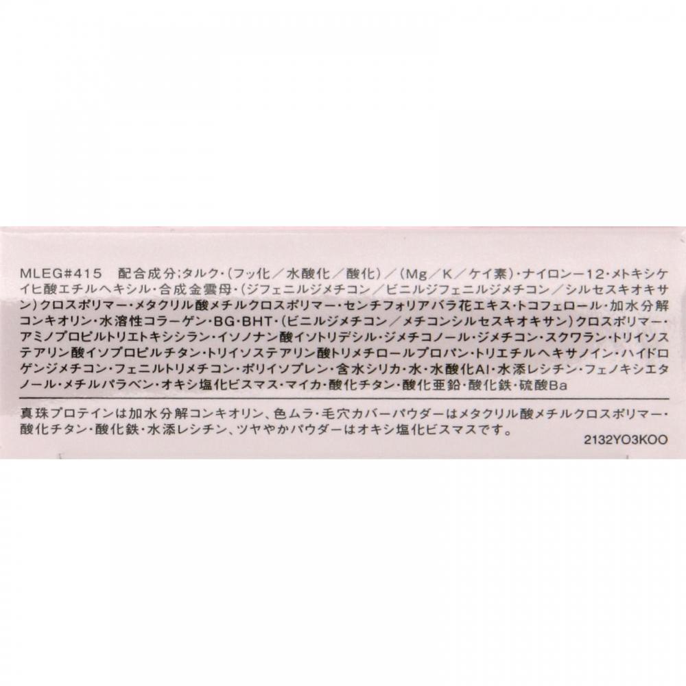 Talc, (Fluoride/Hydroxide/Oxide)/(Mg/K/Silicon), Nylon-12, Methoxy-Cinnamate, Synthetic Mica, (Diphenyl Dimethicone/Vinyl Diphenyl Dimethicone/ Silsesquioxane) Crosspolymer, Methyl Methacrylate Crosspolymer, Centifolia Rose Flower Extract, Tocopherol, Hydrolyzed Conchiolin, Water-soluble Collagen, Butylene Glycol, BHT, (Vinyl Dimethicone/Dimethicone Silsesquioxane) Crosspolymer, Aminopropyl Triethoxysilane, Isononyl Isononanoate, Dimethiconol, Dimethicone, Squalane, Triisostearin, Triisostearin Trimethylolpropane, Triethyl Hexanoate, Hydrogenated Jojoba Oil, Phenoxyethanol, Methylparaben, Bismuth Oxychloride, Mica, Titanium Dioxide, Zinc Oxide, Iron Oxides, Barium Sulfate.