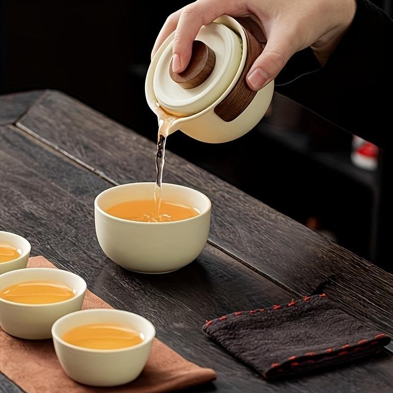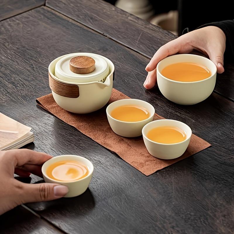 1 комплект чайного сервиза, простой портативный один горшок, четыре чашки, кемпинг, путешествия, уличный чайный сервиз кунг-фу, небольшой набор для приготовления чая для дома, ресторана, офиса, идеально подходит в качестве подарков