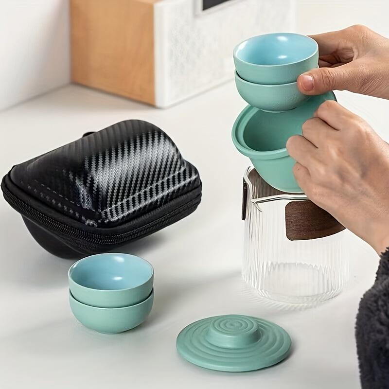 1 комплект, дорожный чайный сервиз, керамическая экспресс-чашка, портативный дорожный чайный сервиз, один горшок, четыре чашки, уличный автомобиль, простой и портативный вспенивающийся